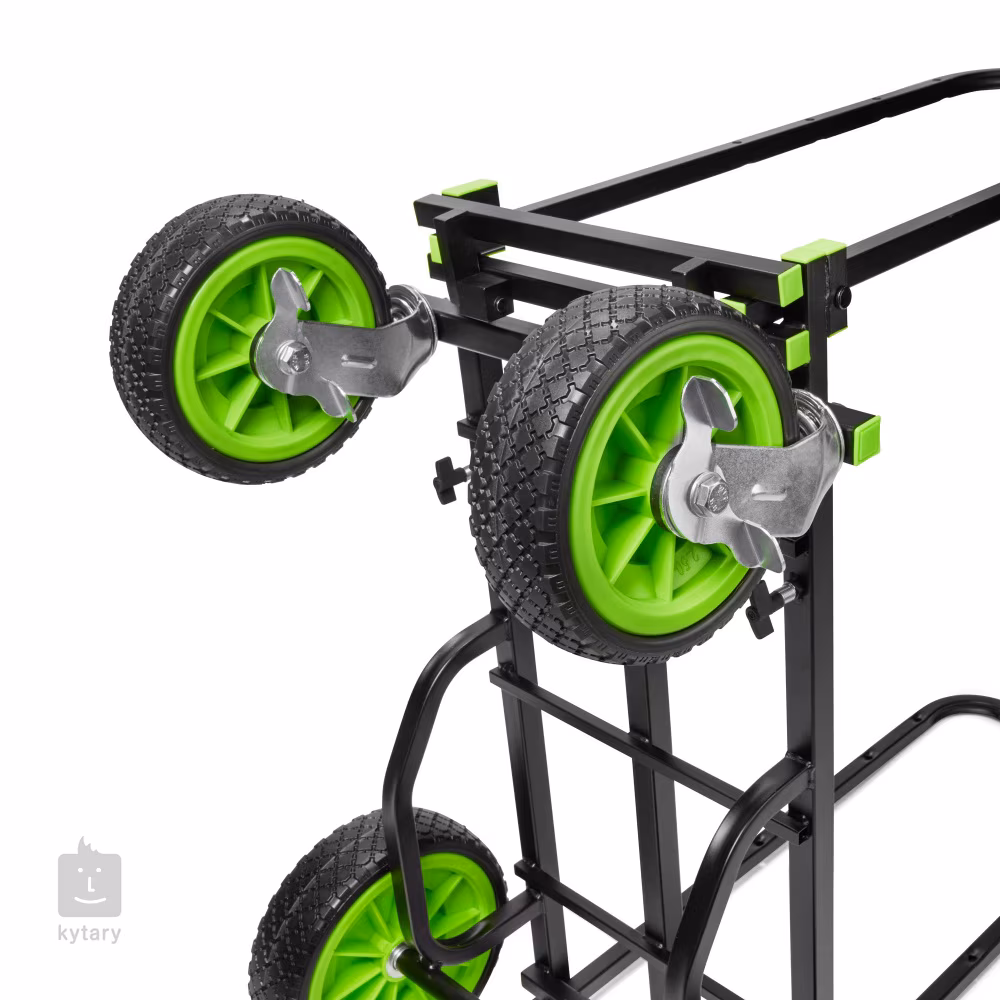 Tento lehký, skladný a zároveň velmi bytelný vozík je určený pro transport čehokoliv. S přehledem si poradí s kytarovými bednami, zesilovači, kytarami samotnými, dokonce za vás odnese i podstatnou část bicí soupravy.