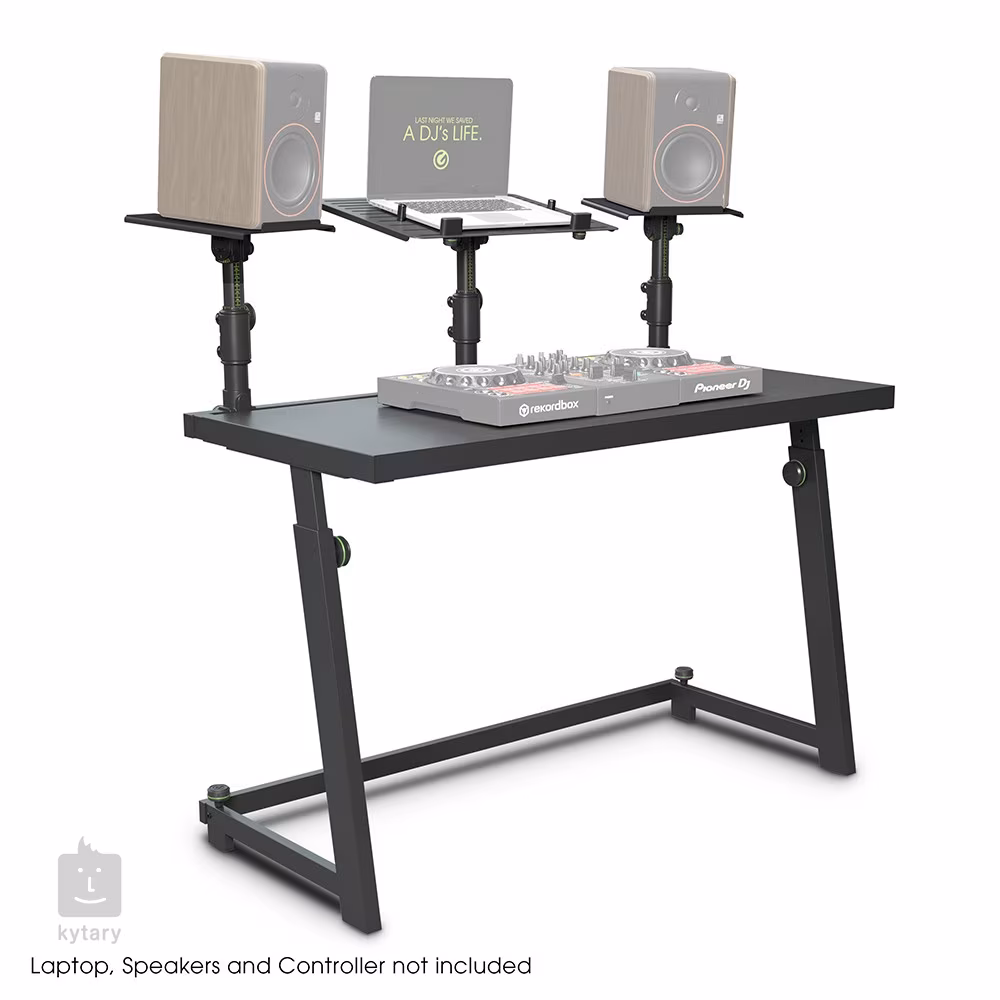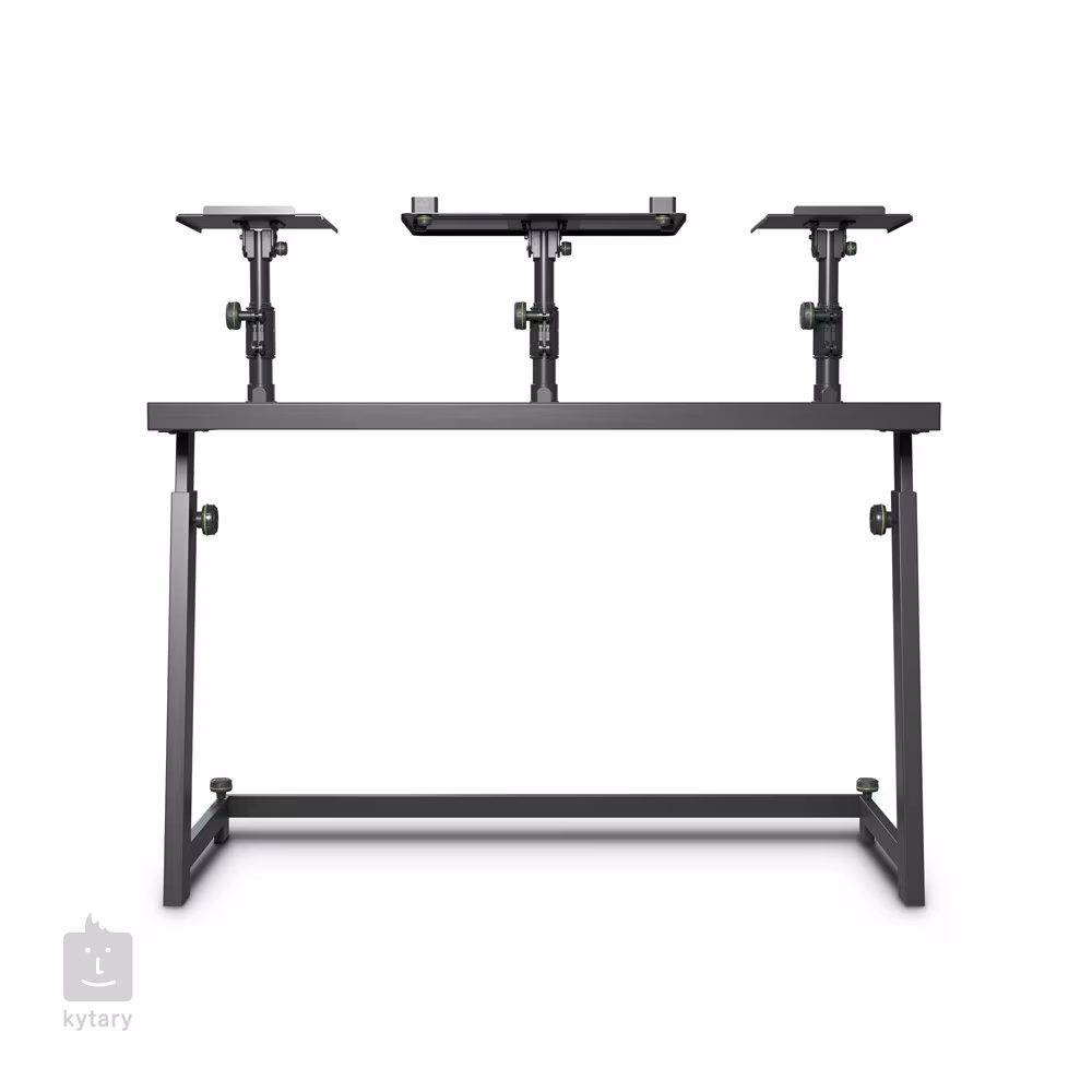 Profesionální DJ stojan disponující prostornou stolovou deskou pro DJ kontrolér, dvěma stojany na studiové monitory a stojanem na laptop. Všechny stojany jsou výškově nastavitelné a lze nastavit i sklon v rozsahu 30 stupňů, takže si je přizpůsobíte vašim potřebám a preferencím. Stojan je vhodný pro studiová session a live performance.