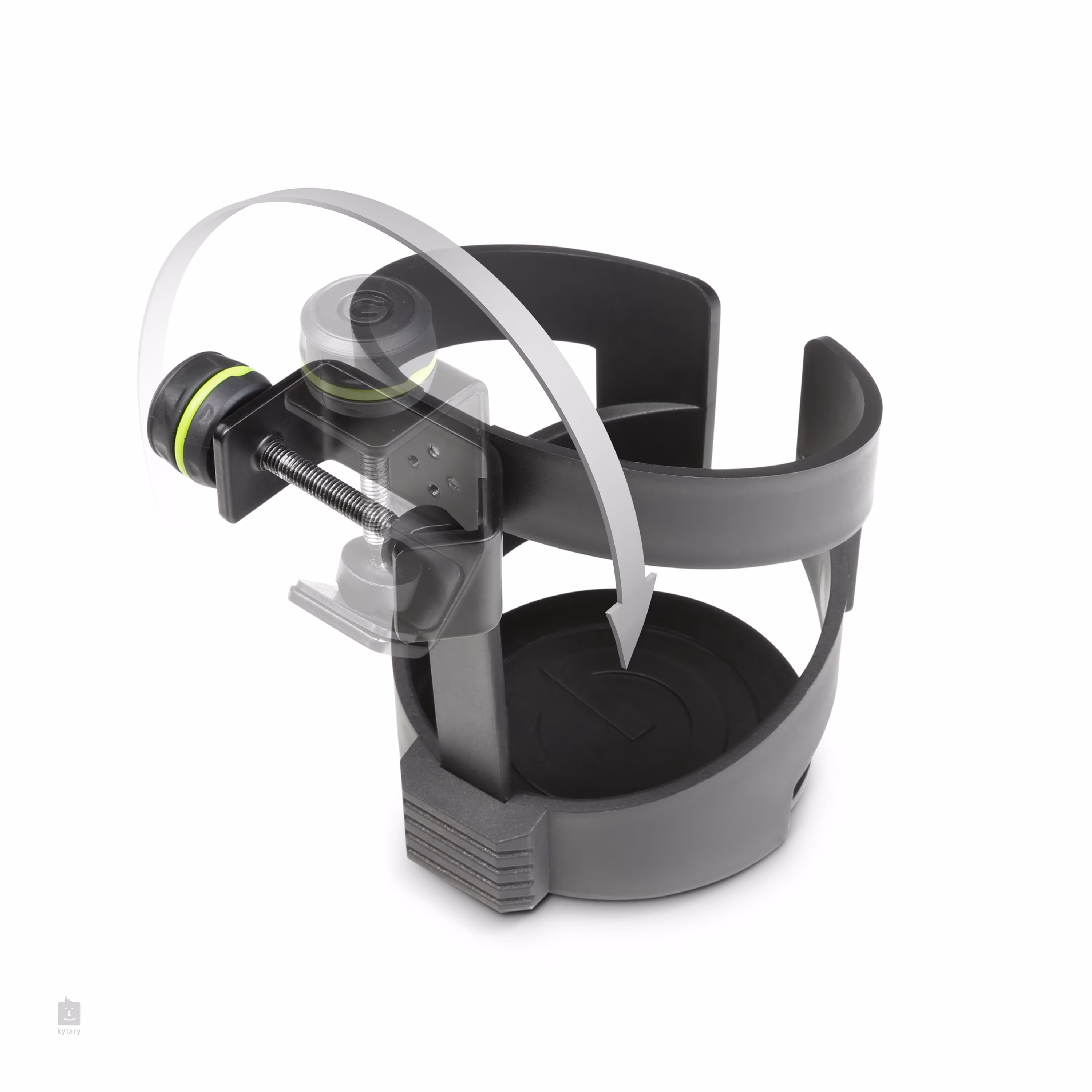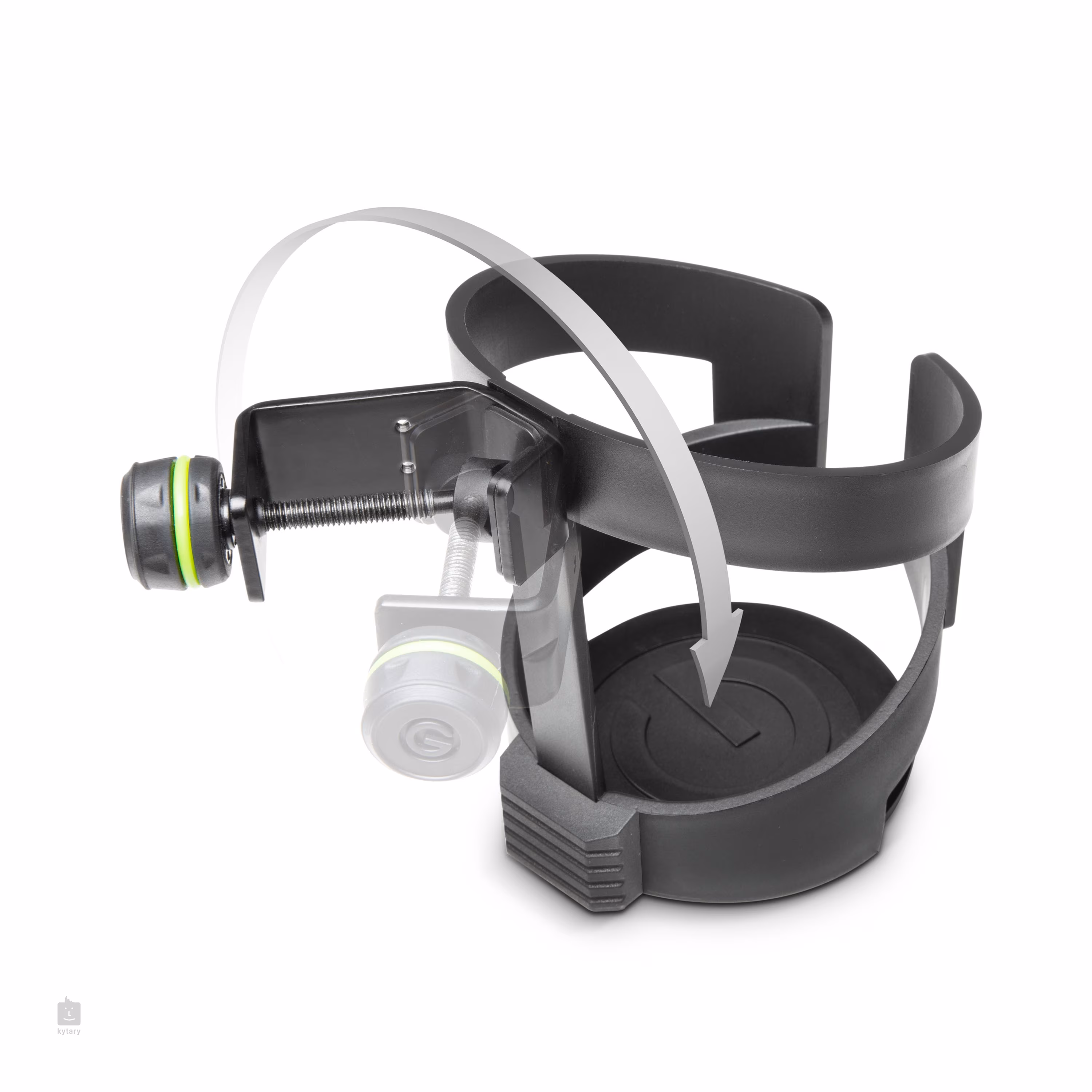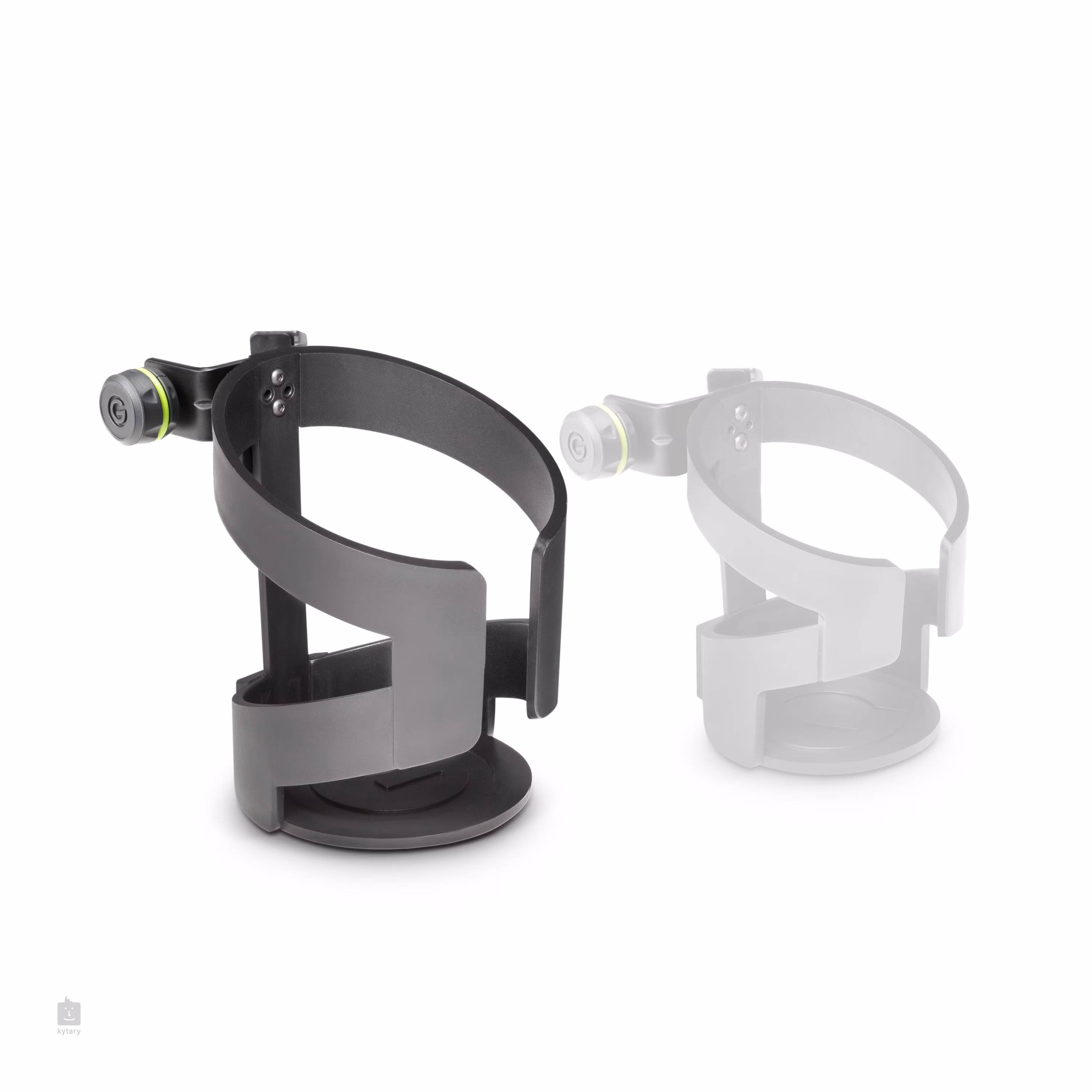 Hlad je převlečená žízeň a není nic horšího, než když vám při koncertě vyschne v krku, potřebujete zazpívat vysoké C, ale voda nikde. Tento problém řeší držák na pití od Gravity, který umístíte na mikrofonní či reproduktorové stojany prostřednictvím robustního závitu. Držák lze rovněž otočit o 90 stupňů, čímž získáte stolní verzi, proto je vhodný nejen na koncerty, ale také do studia, rádia nebo kanceláře. Držák je vyroben z odolného plastu, závit lze připevnit na plochu o šířce až 35 mm a nádoba má průměr 90 mm, takže s přehledem pojme větší nápojovou lahev nebo festivalový kelímek.