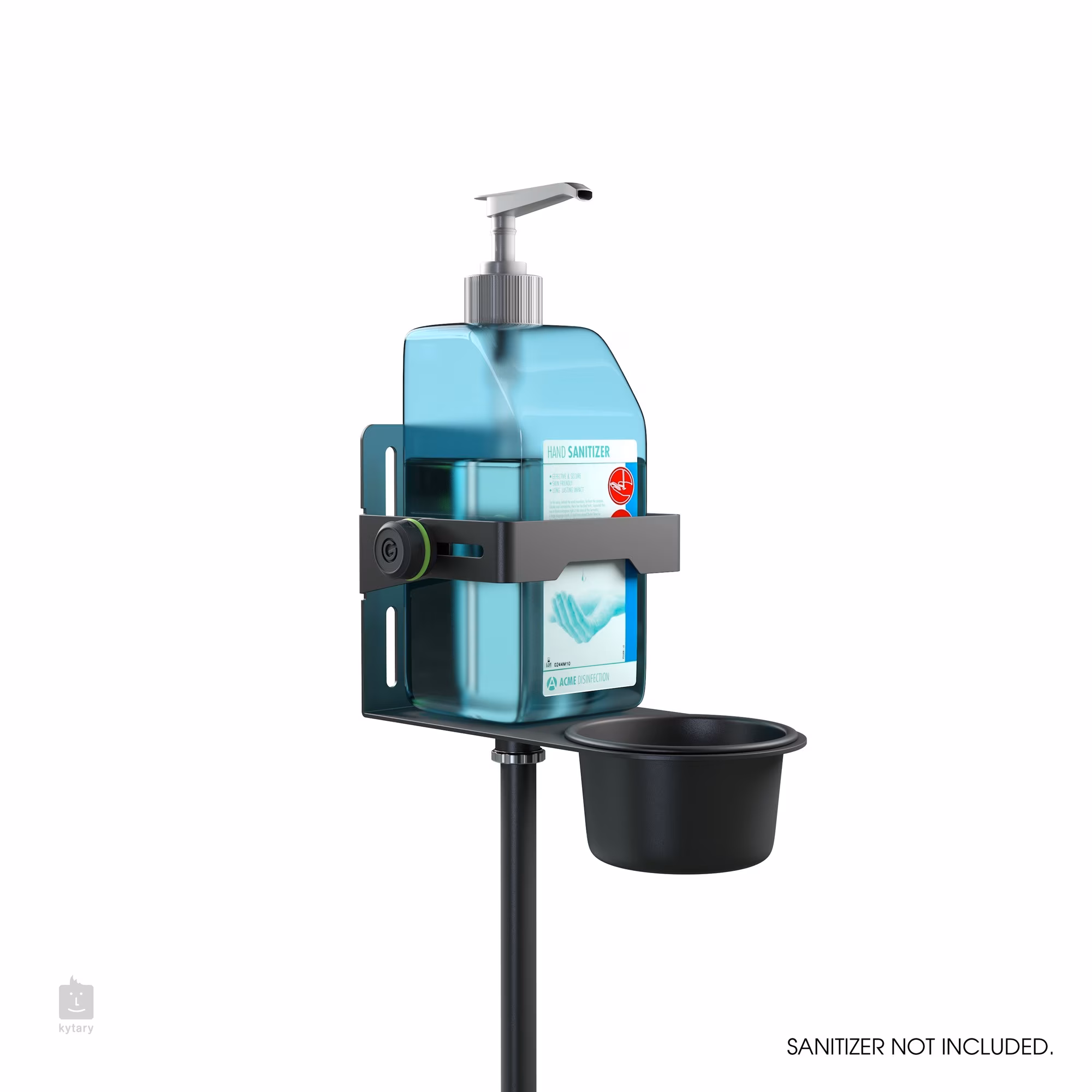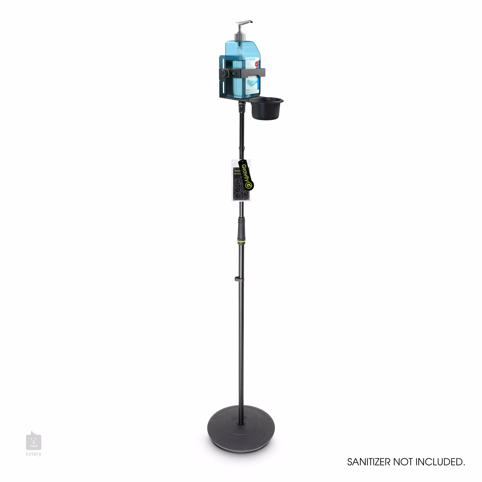 Robustní stojan na dezinfekci od Gravity vhodný pro vnitřní i venkovní užití, vyroben z pevné oceli a jeho údržba či transport je velmi jednoduchá. Stojan se skládá z robustního mikrofonního stojanu a držáku dezinfekce se závorou proti vypadnutí nádobky a miskou pro zachycení tekoucí dezinfekce.