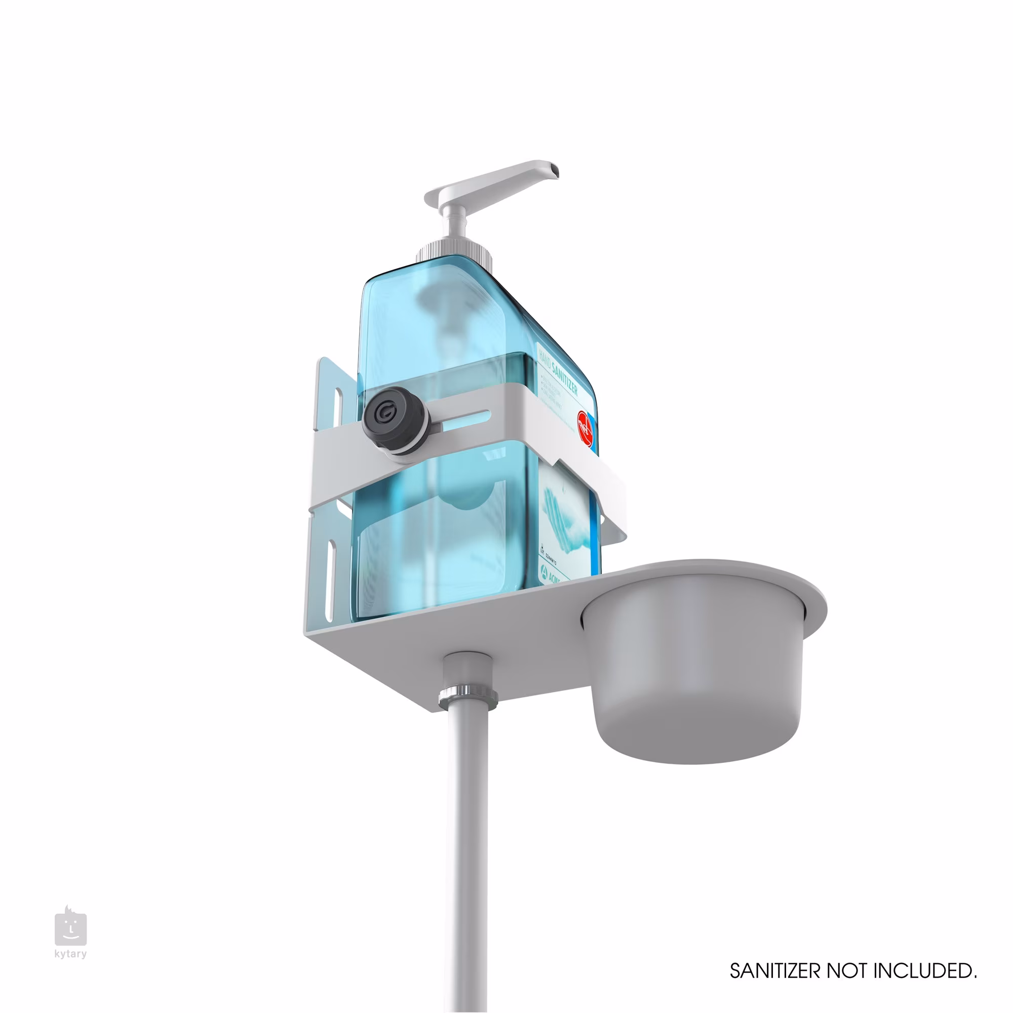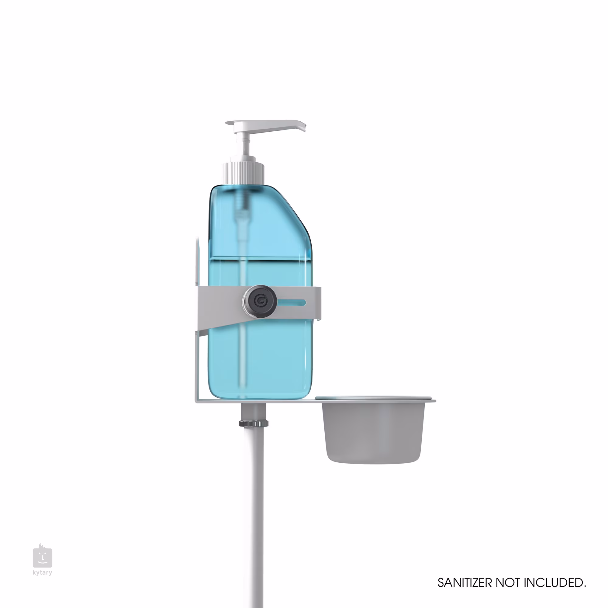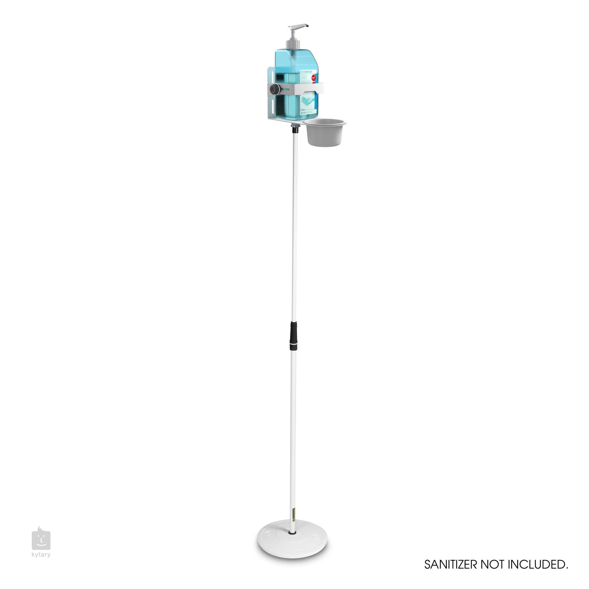 Robustní stojan na dezinfekci od Gravity vhodný pro vnitřní i venkovní užití, vyroben z pevné oceli a jeho údržba či transport je velmi jednoduchá. Stojan se skládá z robustního mikrofonního stojanu a držáku dezinfekce se závorou proti vypadnutí nádobky a miskou pro zachycení tekoucí dezinfekce.