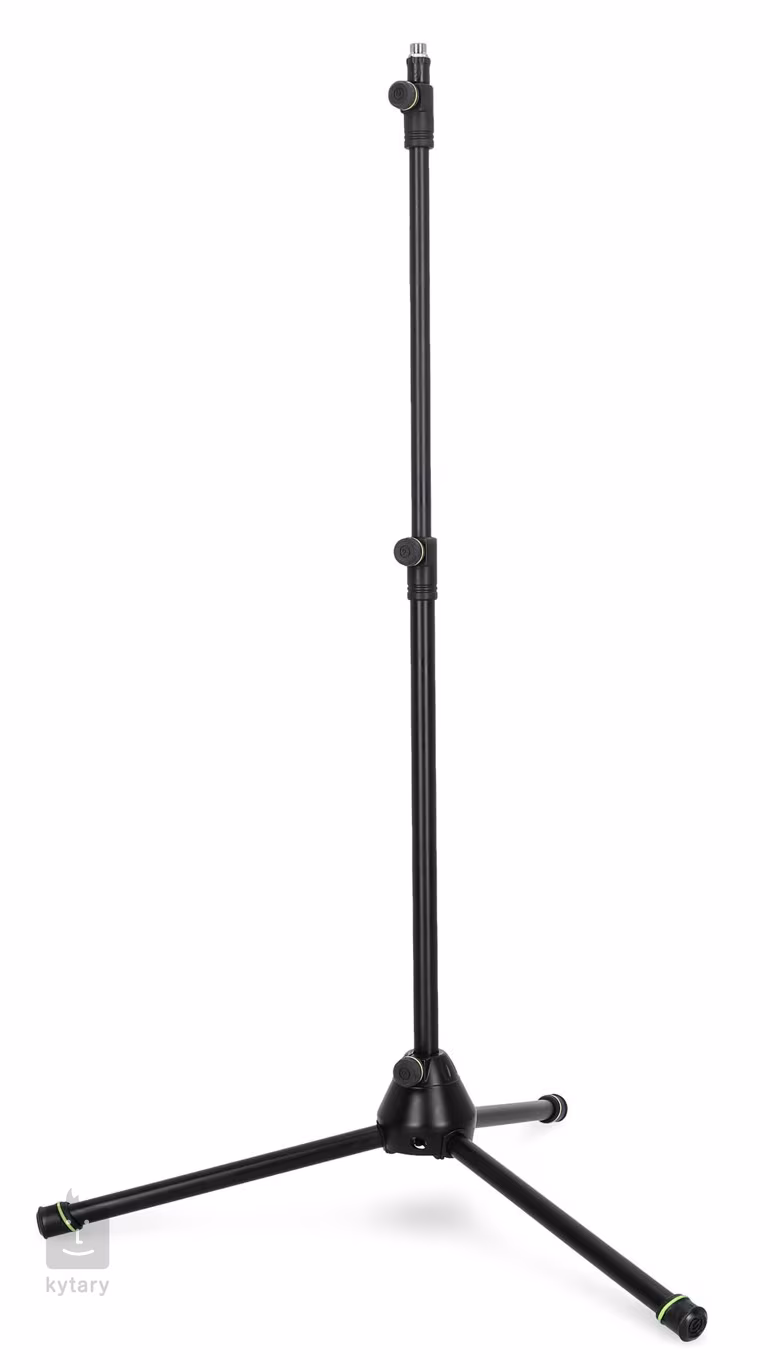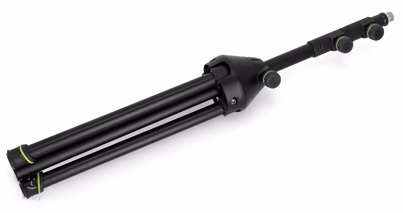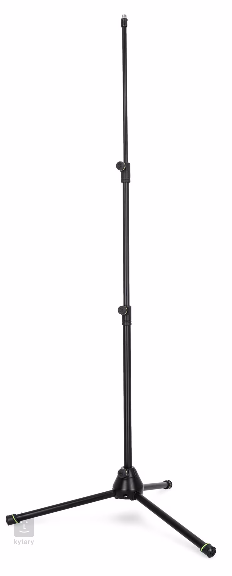 Robustní ocelový mikrofonní stojan se zinkovou die-cast základnou na trojnožce, nastavením výšky od 700 mm do 1610 mm a kompaktní velikostí ve složeném stavu (620 mm).