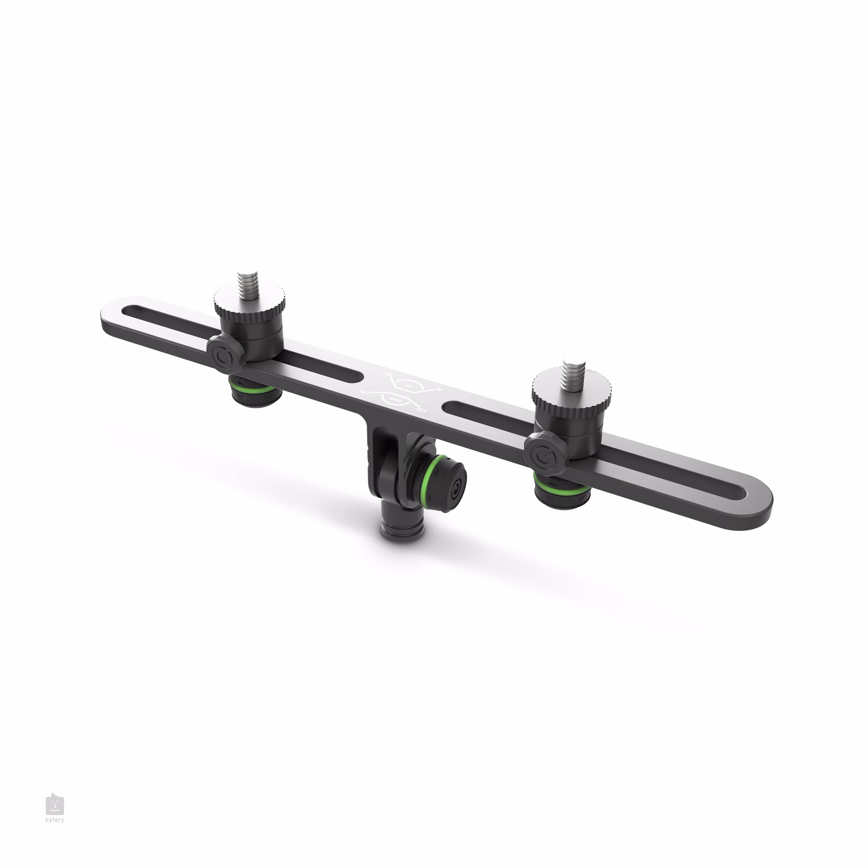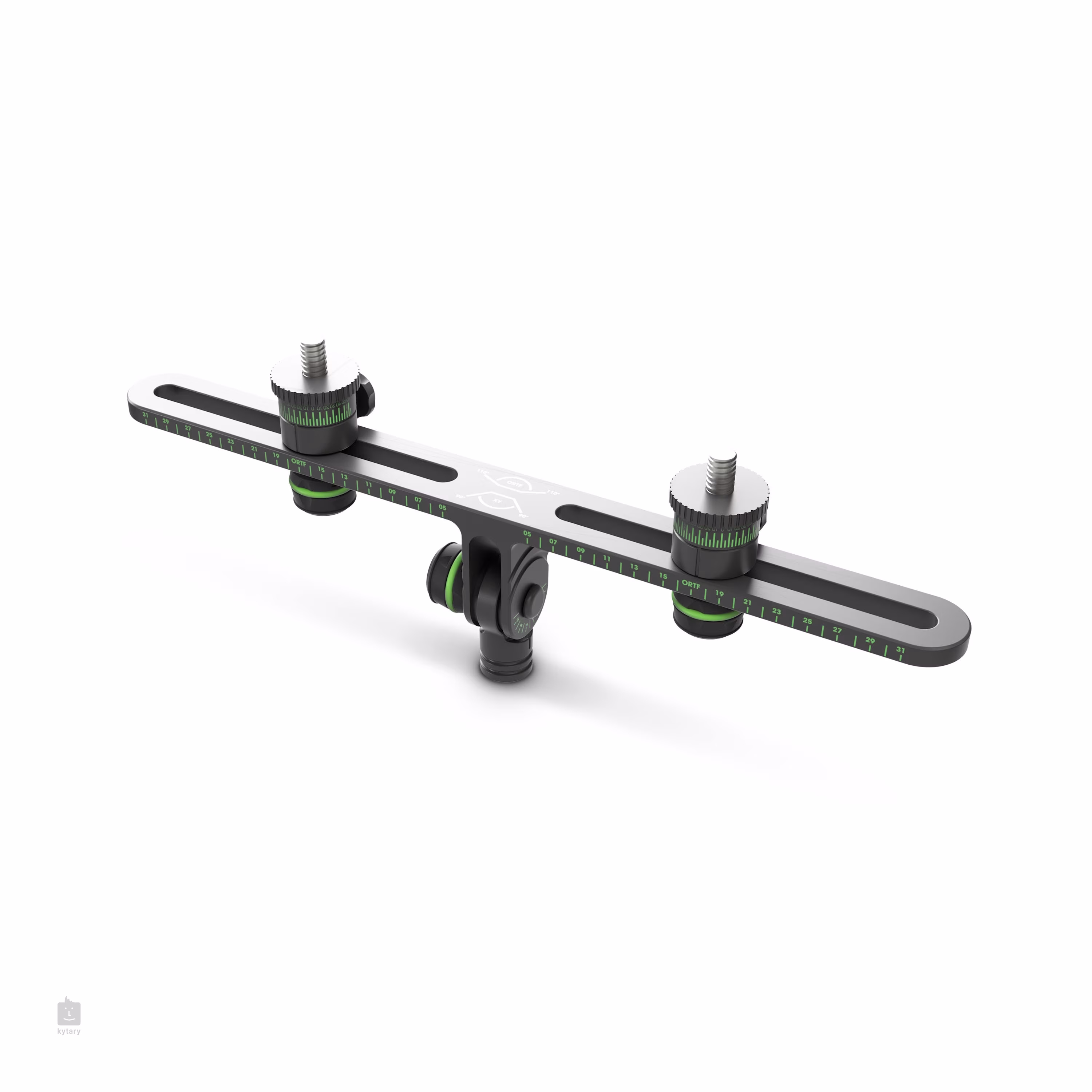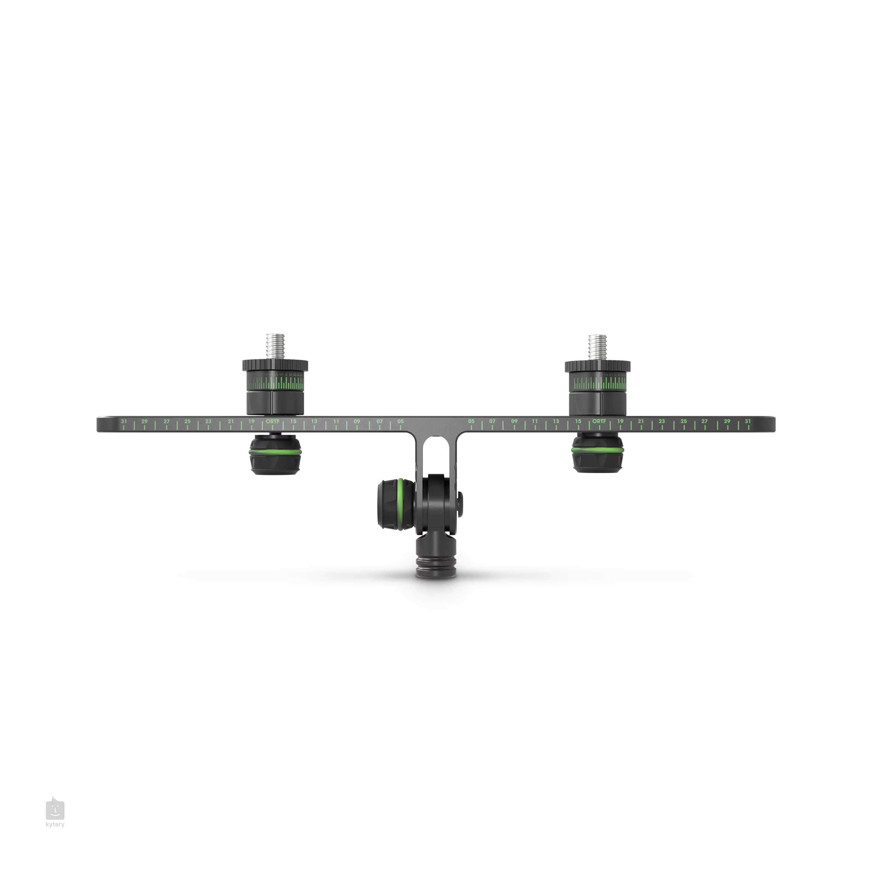 Univerzální držák pro dva mikrofony je vyroben z odolného hliníku, vhodný pro stereo záznam akustických, elektrických nebo perkusních nástrojů. Díky kolejnicím a polohovatelným závitům můžete nastavit všechny možné směry a varianty stereo nahrávání (ORTF, DIN, XY a AB). Lišta disponuje pohyblivým kloubem s 3/8" závitem, takže ji můžete snadno umístit na mikrofonní stojan. Horizontální rozteč mezi mikrofony je 60 - 290 mm.