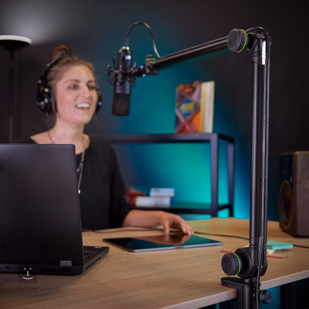 Vysoce skladný a kompaktní mikrofonní stojan vhodný pro broadcast, natáčení podcastů, nebo domácí nahrávací studio. Stojan je vyroben z odolného hliníku a můžete ho připevnit na stolovou desku, nebo trubku o průměru 15 až 54 mm. Polohovatelné rameno krk vám potom umožní nastavit vámi požadovaný sklon, čímž si zajistíte to nejlepší snímání signálu. Stojan můžete otáčet v úhlu 90 stupňů a také disponuje lištou pro dokonalý kabelový management.