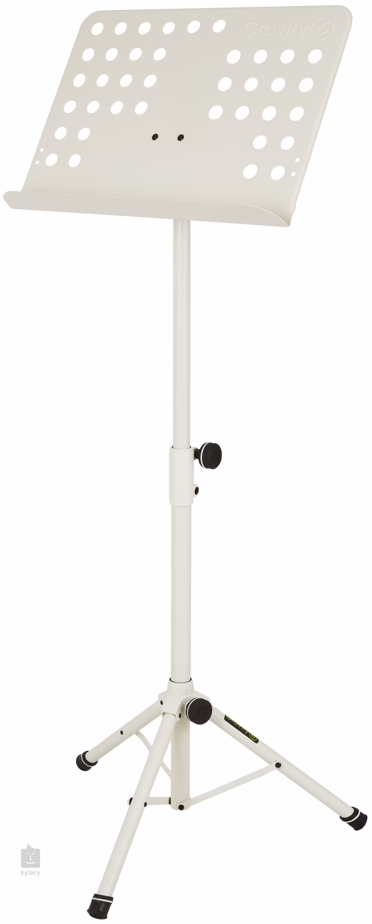 Tento notový stojan od značky Gravity nabízí bytelnou pevnou konstrukci se stabilní základnou v podobě trojnožky a děrovaný notový pult s rozměry 47,5 x 34 cm. Díky nastavitelnosti výšky od 66 do 120 cm využijete stojánek vy i vaše děti. Veškeré ergonomicky tvarované ovládací prvky (upínáky) jsou zhotoveny z ABS/nylonu a potažené termoplastickým materiálem pro snadné, rychlé a plynulé nastavení. Manipulace se stojanem je v tomto případě otázkou vteřiny, navíc se zcela obejdete bez úmorného šroubování.