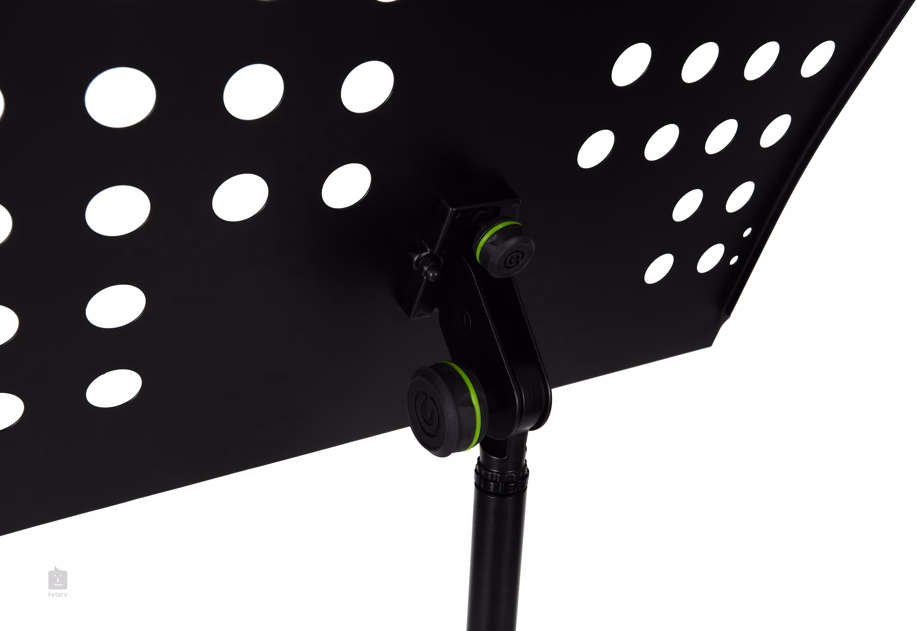 Tento notový stojan od značky Gravity nabízí bytelnou pevnou konstrukci se stabilní základnou v podobě trojnožky a děrovaný notový pult s rozměry 47,5 x 34 cm. Díky nastavitelnosti výšky od 66 do 120 cm využijete stojánek vy i vaše děti. Veškeré ergonomicky tvarované ovládací prvky (upínáky) jsou zhotoveny z ABS/nylonu a potažené termoplastickým materiálem pro snadné, rychlé a plynulé nastavení. Manipulace se stojanem je v tomto případě otázkou vteřiny, navíc se zcela obejdete bez úmorného šroubování.