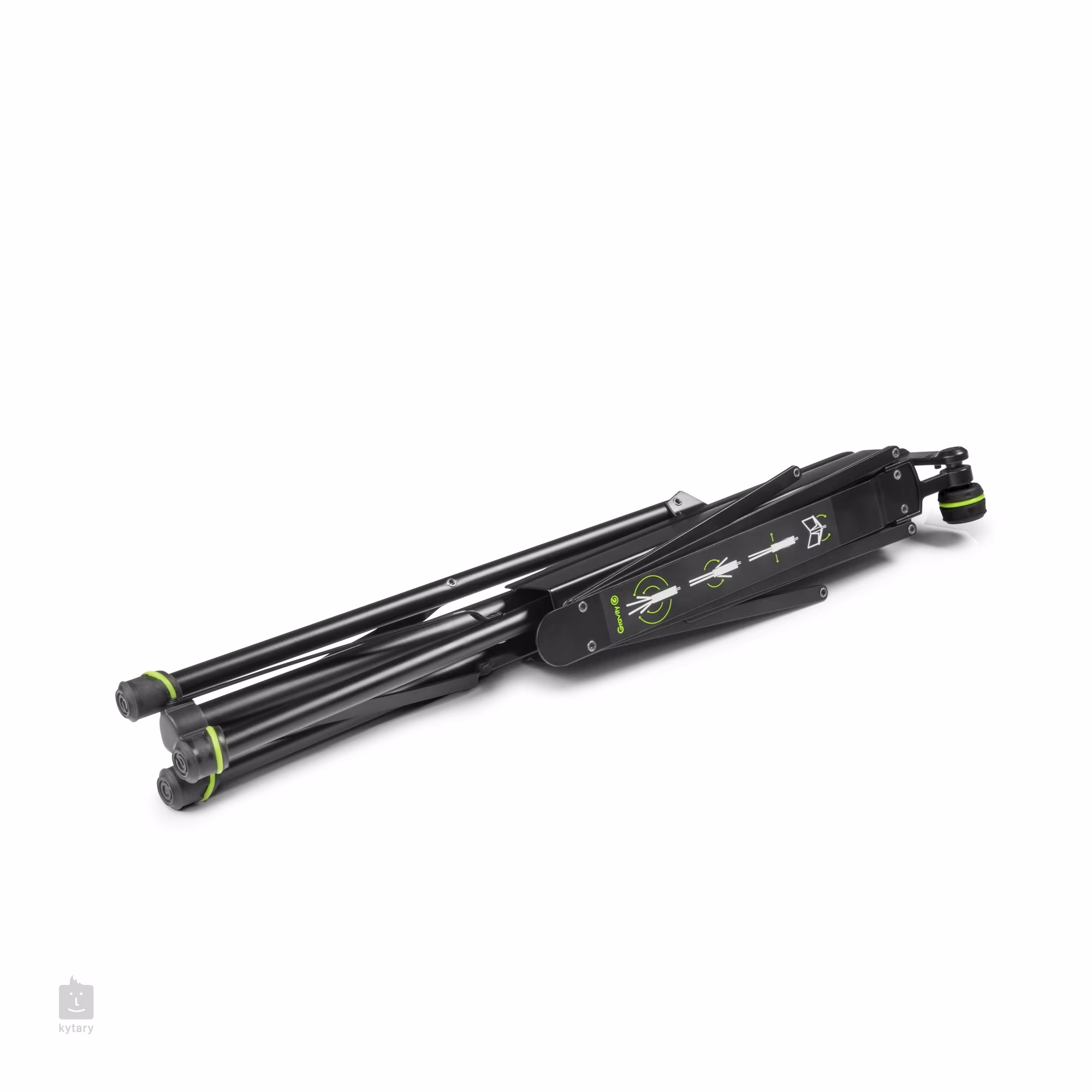 Kvalitní skládací notový stojan značky Gravity s bytelnou ocelovou konstrukcí se základnou na trojnožce, snadným a rychlým nastavením výšky (od 670 do 1385 mm) a stručným návodem ke složení a rozložení notového pultu natištěným na samotném notovém pultu. Stojan je dodáván v neoprenovém obalu.