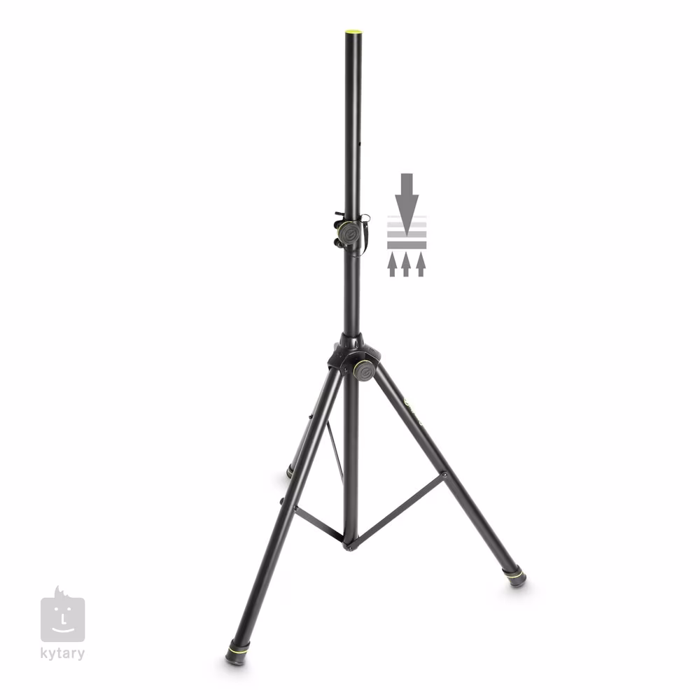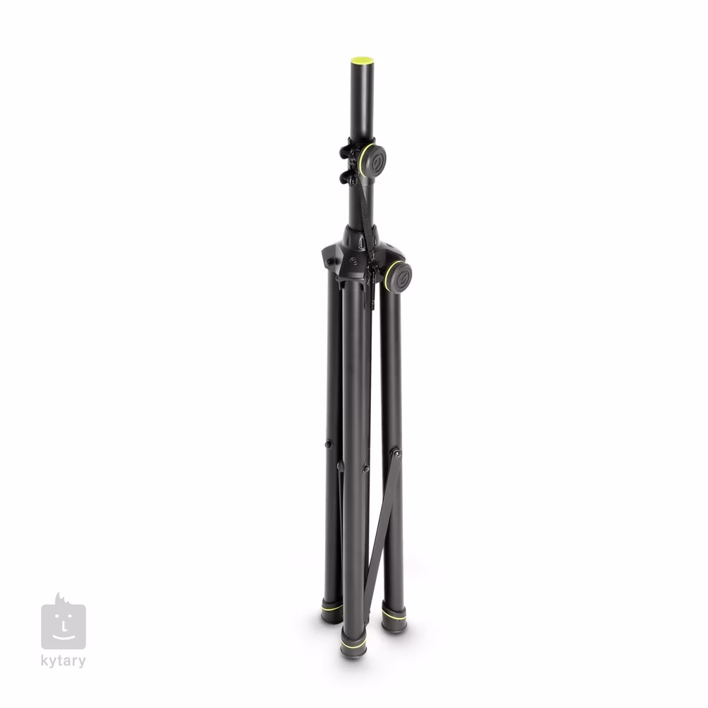 Klasický, trojnohý stojan na reprobox od německé firmy Gravity je vyroben z odolného materiálu, přičemž si však zachovává velmi nízkou hmotnost pro snadný transport. Jako v případě ostatních stojanů této firmy nabízí ergonomicky tvarované šrouby pokryté termoplastovou gumou, které umožňují velmi rychlé a pohodlné nastavení požadované výšky. U šroubu nastavující výšku nechybí bezpečnostní pojistka, mechanismus je navíc vyroben z oceli a je tak téměř nezničitelný.