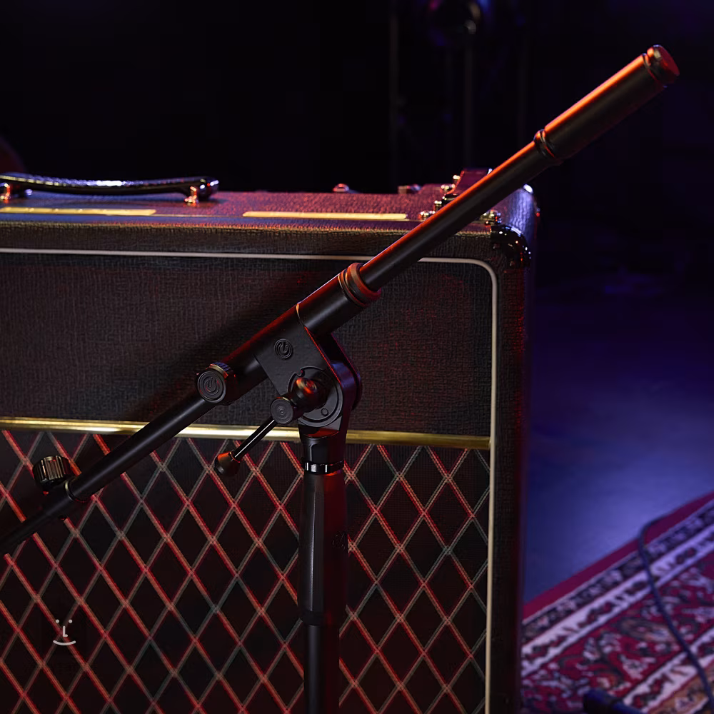 Nízký mikrofonní stojan TMS 4232 B je ideální pro snímání kytarových aparátů, na pozici u bicí soupravy a všude tam, kde je tradiční mikrofonní stojan zbytečně velký. Stojan je vyroben z kvalitní oceli, takže je velmi odolný vůči nešetrnému zacházení. Šrouby a manipulační prvky jsou ergonomicky tvarované a potažené gumou pro snadné, rychlé a plynulé nastavení. Klíčový prvek pro nastavení ramene je zkonstruovaný z nezničitelného tlakově litého zinku a zaručuje dlouhou životnost při častém používání. Všechny upínací prvky jsou dokonale funkční, důraz byl dán i na efektivní vedení kabelu a robustní stabilitu díky tradiční trojnožce.