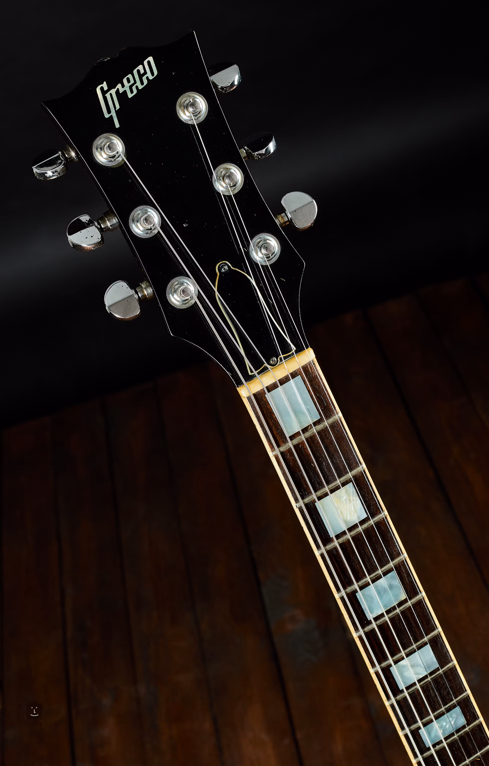 Lawsuit les paul od japonské značky Greco s tradiční lepenou konstrukcí. Tenký profil krku podle modelů z 60. let.