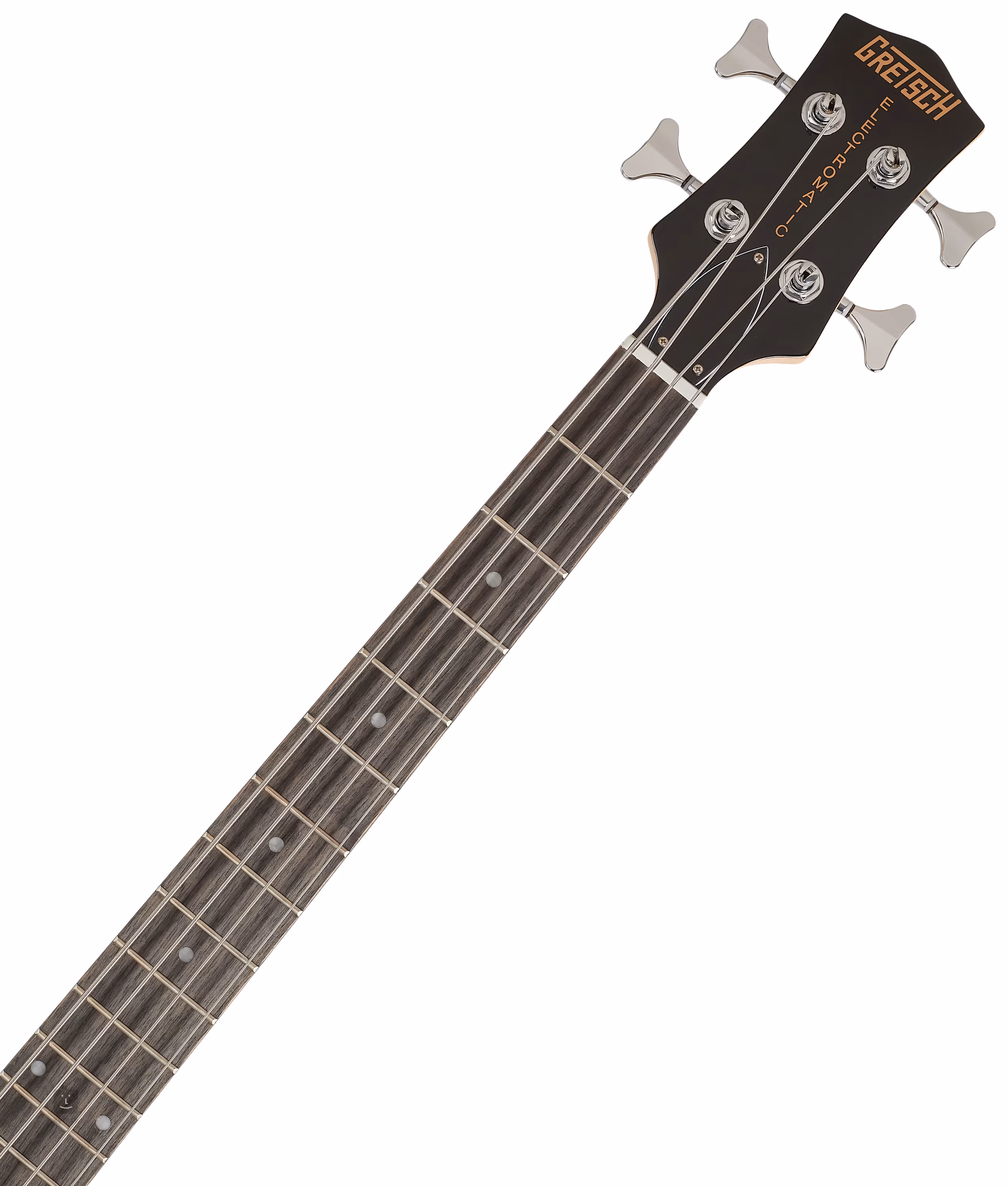 Dva singlecoil snímače Gretsch mini poskytují baskytaře zvuk s robustními basy a průraznými středy, který lze upravovat pomocí potenciometru hlasitosti, tónové clony a třípolohového přepínače snímačů. Struny jsou uchyceny přes nultý pražec z umělé kosti ve firemních Die-Cast ladicích mechanikách a nastavitelné kobylce.