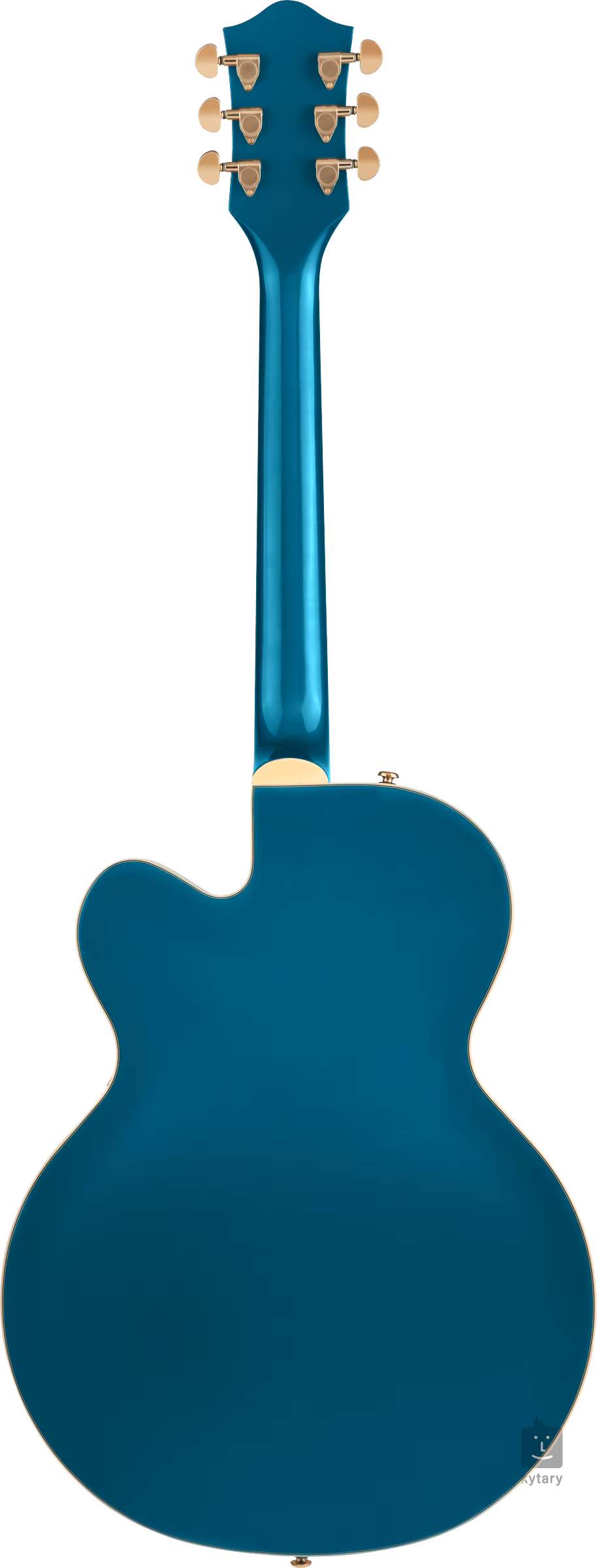 Přesné ladění zaručuje uchycení strun přes nultý pražec z umělé kosti ve firemních Die-Cast ladících mechanikách a v kobylce Adjusto-Matic usazené na pevné základně z fíkovníku. Licenčním tremolem Bigsby B60 zpestříte hru decentními zvukovými efekty. Klasický oku lahodící design kytar Gretsch podtrhuje řada stylových prvků - od klenuté konstrukce těla s rozšířenými F otvory pro lepší akustickou projekci, elegantní lemovky (Aged White) doplněné černobílými linkami, hardware ve zlatém provedení po třívrstvý pickguard z imitace želvoviny se zlatým logem Gretsch.