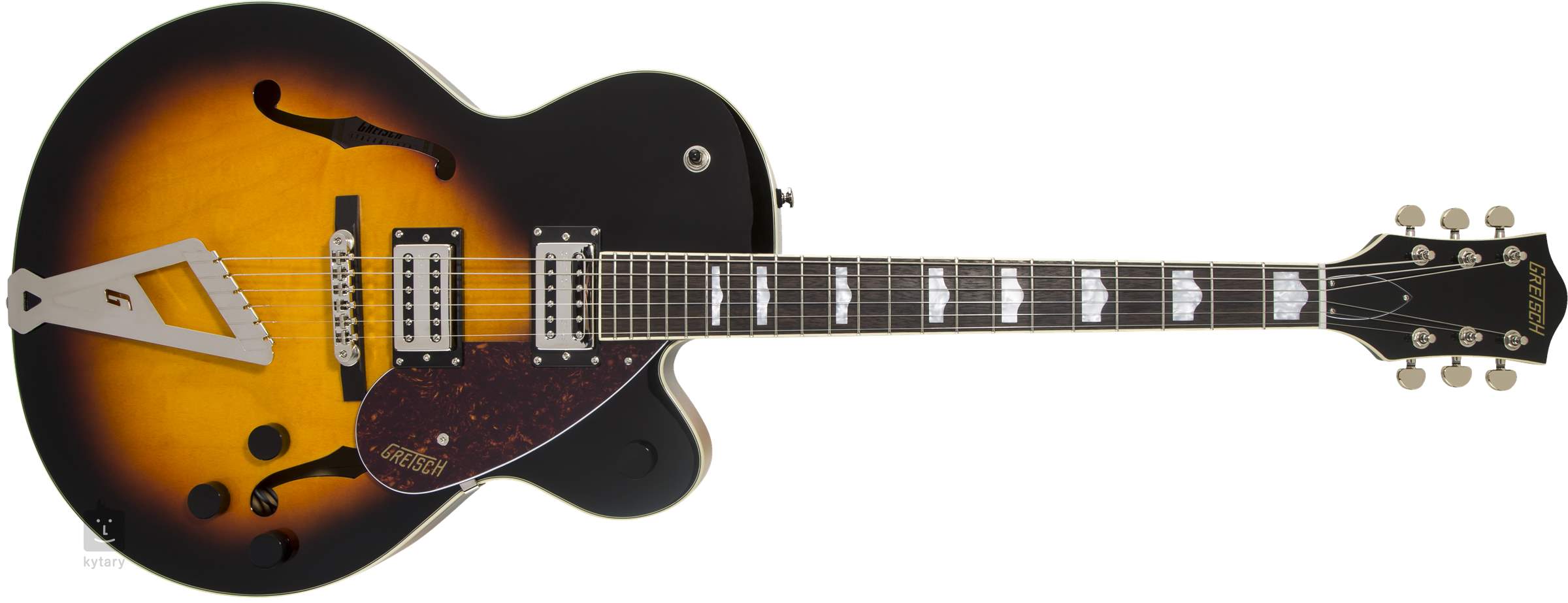 Přesné ladění zaručuje uchycení strun přes nultý pražec z umělé kosti ve firemních Die-Cast ladících mechanikách, na druhé straně v kobylce Adjusto-Matic usazené na pevné dřevěné základně a struníku Chromatic II. Klasický oku lahodící design kytar Gretsch podtrhuje řada stylových prvků - od klenuté konstrukce těla s rozšířenými F otvory pro lepší akustickou projekci, elegantní lemovky s jemným nádechem patiny (Aged White) a černobílé výložky, potenciometrů ve vintage stylu, niklového hardware po třívrstvý pickguard z imitace želvoviny.