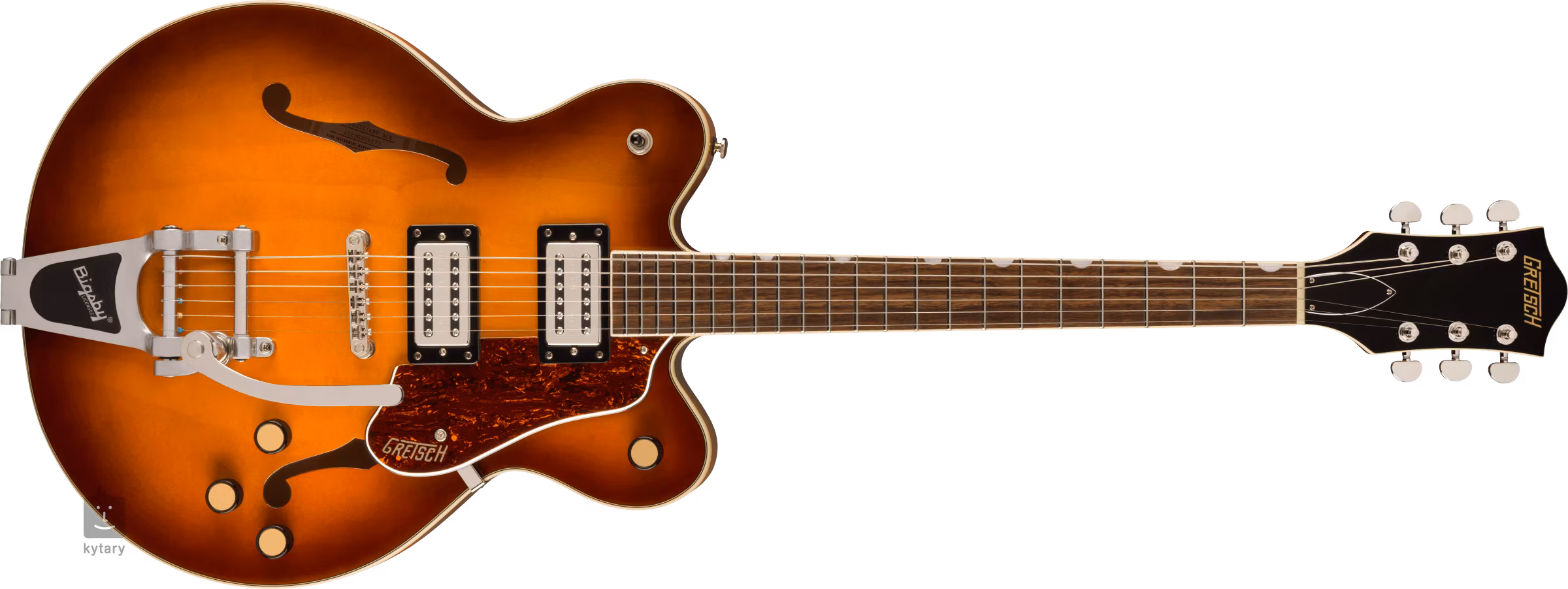 Pololubová kytara G2622T ze série Streamliner jistě potěší hráče, kteří hledají nástroj s moderním zvukem a elegantním designem kytar Gretsch.