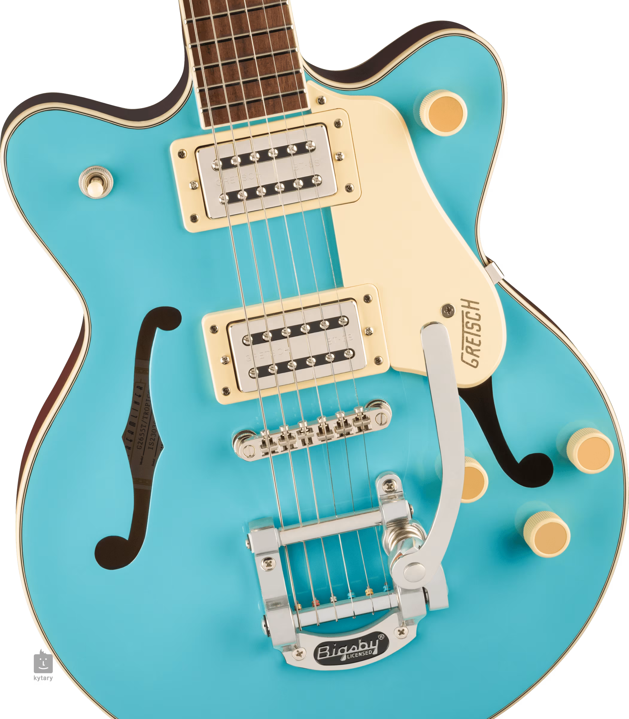 Pololubová kytara G2655T ze série Streamliner jistě potěší hráče, kteří hledají nástroj s moderním zvukem a elegantním designem kytar Gretsch.