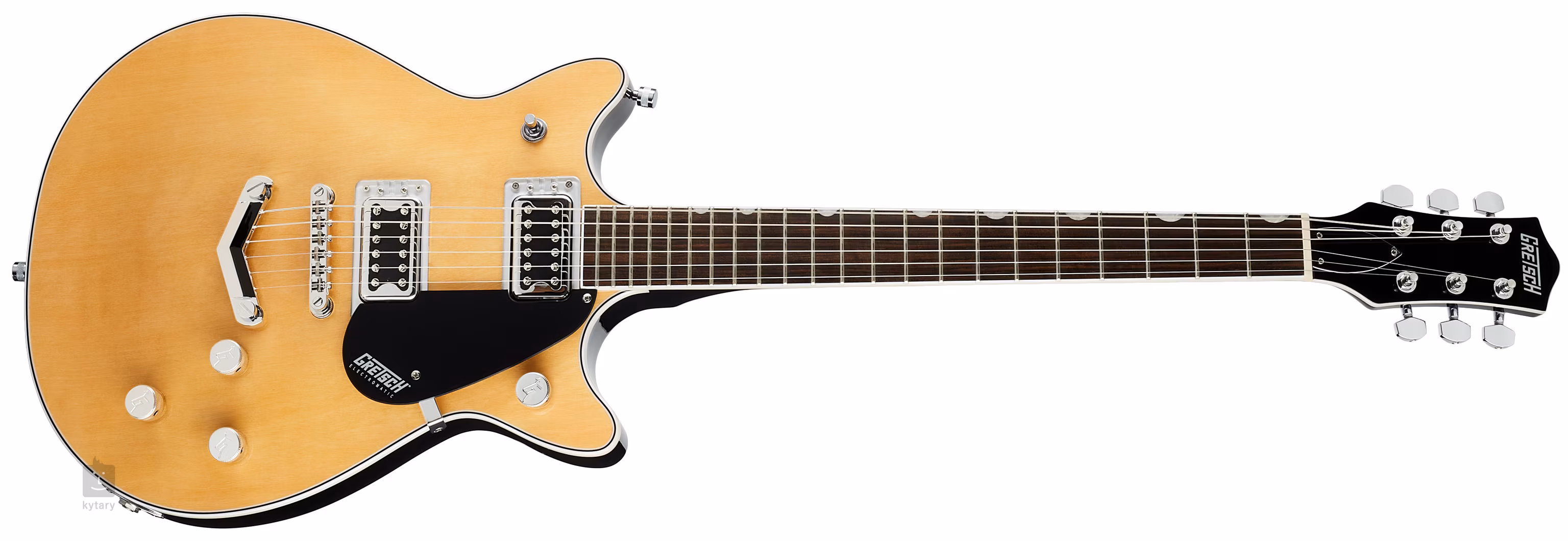 Struny jsou uchyceny ve firemních die-cast ladicích mechanikách, nastavitelné kobylce Adjusto-Matic a struníku Gretsch V Stoptail. Stylový design nástroje podtrhují tradiční prvky v podobě světlé obvodové lemovky těla doplněné černobílými linkami, chromovaný hardware a černý pickguard.