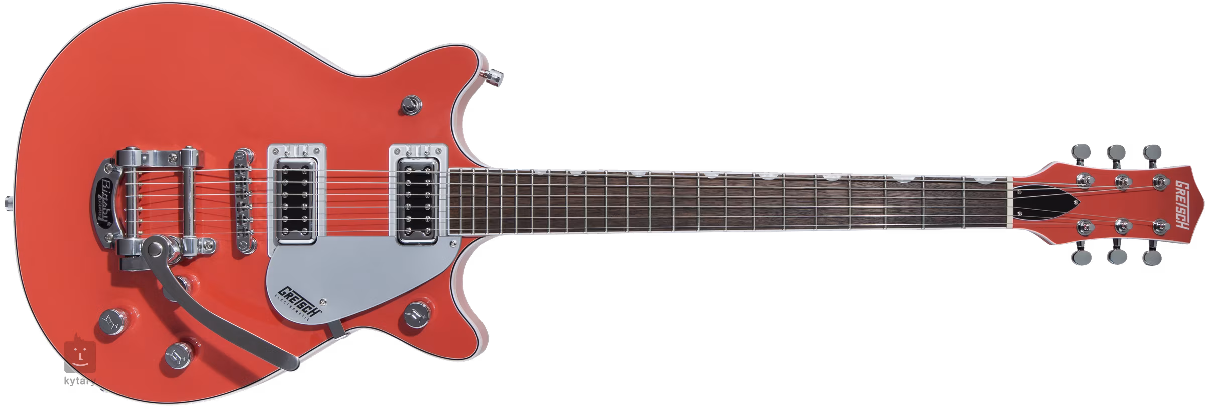 Struny jsou uchyceny ve firemních Die-Cast ladících mechanikách a nastavitelné kobylce Adjusto-Matic s licenčním tremolem Bigsby B50. Stylový design nástroje podtrhují tradiční prvky v podobě světlé obvodové lemovky těla doplněné černobílými linkami, chromovaný hardware a Silver Plexi pickguard s černým firemním logem Gretsch.