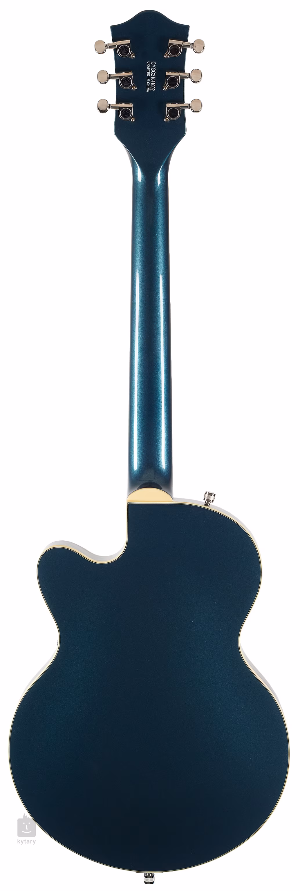 Kompaktnější tělo pololubového single-cut modelu G5655TG je zhotoveno z překližovaného javoru a komorovaného smrkového centrálního bloku, který vyztužuje přední desku kytary. K javorovému krku s profilem Thin „U“ je přilepen hmatník ze dřeva fíkovníku osazený dvaadvaceti pražci velikosti Medium Jumbo. Orientaci po jeho ploše usnadňují offset polohové značky z imitace perleti (Neo-Classical Thumbnail).