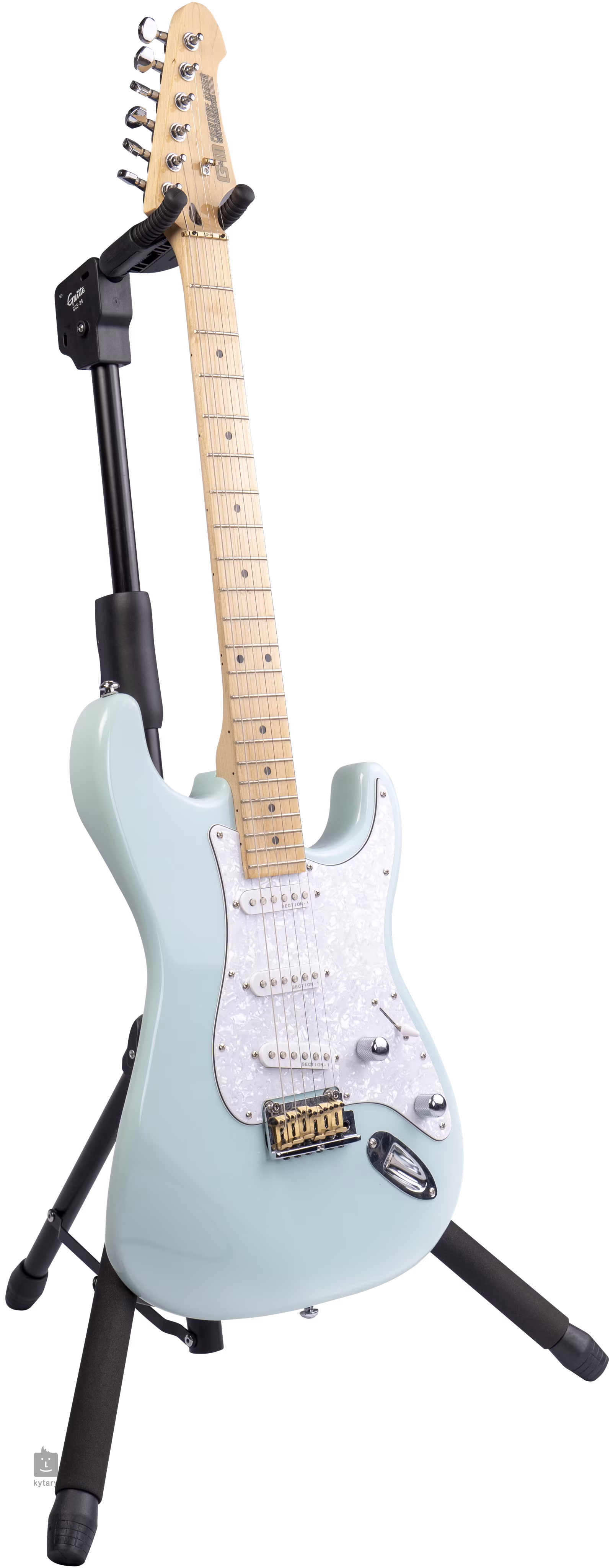 Univerzální nástrojový stojan od čínské firmy Guitto umožní uložení téměř všech typů kytar a baskytar bez ohledu na tvar hlavice. Unikátní samozamykací mechanismus spolehlivě zafixuje nástroj na místě za použití toho nejjednoduššího principu, na který se můžete vždy spolehnout – gravitace. Pevná ocelová konstrukce zaručuje nosnost až 20 kilogramů, poddajný polyamid zase spolehlivě zabrání poškrábání laku vašeho cenného nástroje. Samozřejmostí je možnost složení stojanu pro snadný transport nebo uložení.