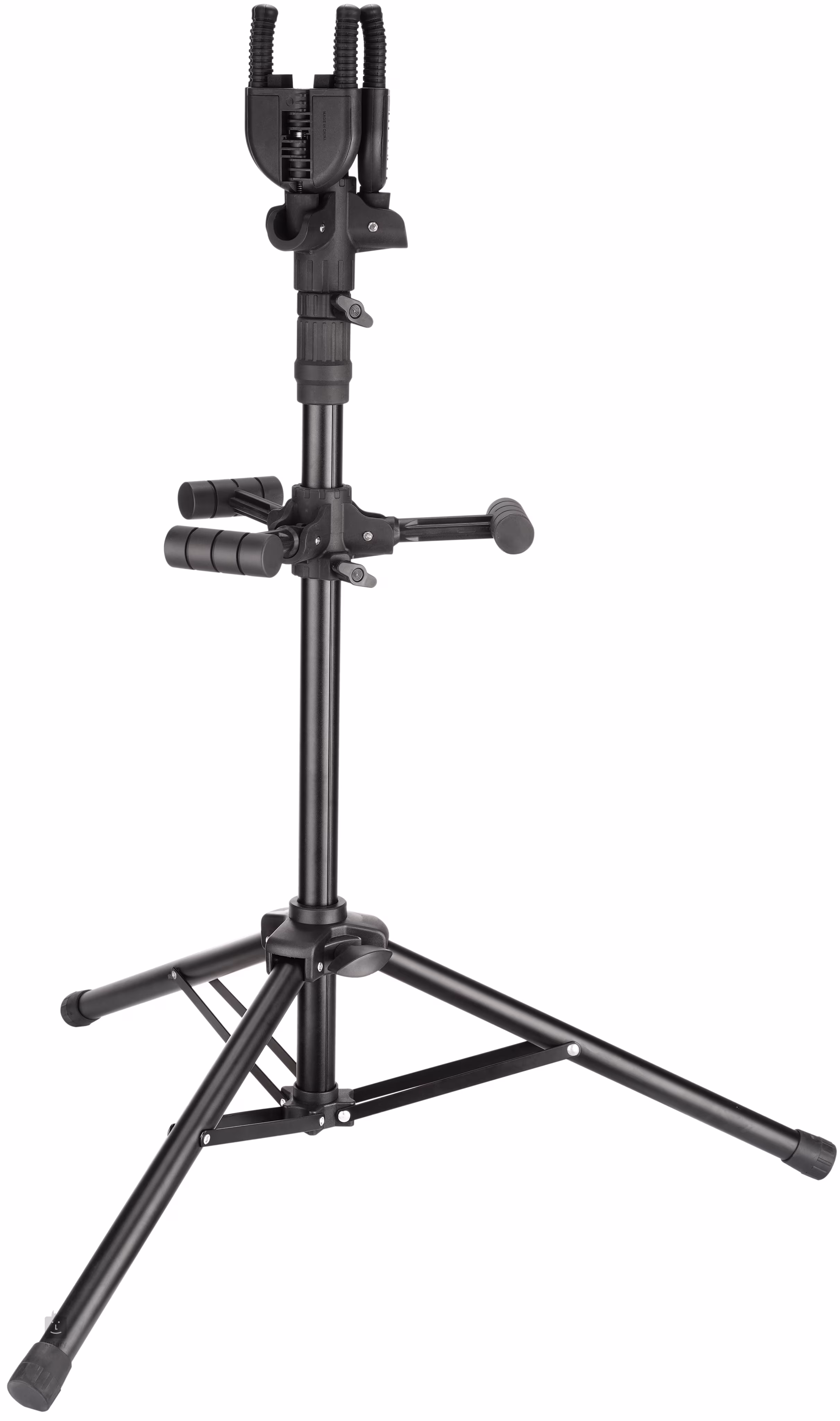 Univerzální nástrojový stojan od čínské firmy Guitto umožní uložení až tří kusů téměř všech typů kytar a baskytar bez ohledu na tvar hlavice. Unikátní samozamykací mechanismus spolehlivě zafixuje nástroj na místě za použití toho nejjednoduššího principu, na který se můžete vždy spolehnout – gravitace. Pevná ocelová konstrukce zaručuje celkovou nosnost až 45 kilogramů (každý držák 15 kilogramů), poddajný polyamid pak spolehlivě zabrání poškrábání laku vašeho cenného nástroje. Samozřejmostí je možnost složení stojanu pro snadný transport nebo uložení.