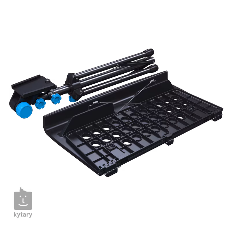 Univerzální notový stojan je vhodný pro hru v sedě, nebo ve stoje. Zároveň najde uplatnění při domácím cvičení, live performance nebo ve studiu. Stojan se skládá z robustní ocelové trojnožky, hliníkových spojovacích dílů a ergonomického notového pultu z odolného polyamidu. Skládací konstrukce vám umožní tři výškové nastavení a také snadný a pohodlný transport. Flexibilní notový pult o rozměrech 47 x 39 centimetrů zase nabídne hned několik možností připevnění not, tabletů nebo dalších mobilních zařízení.