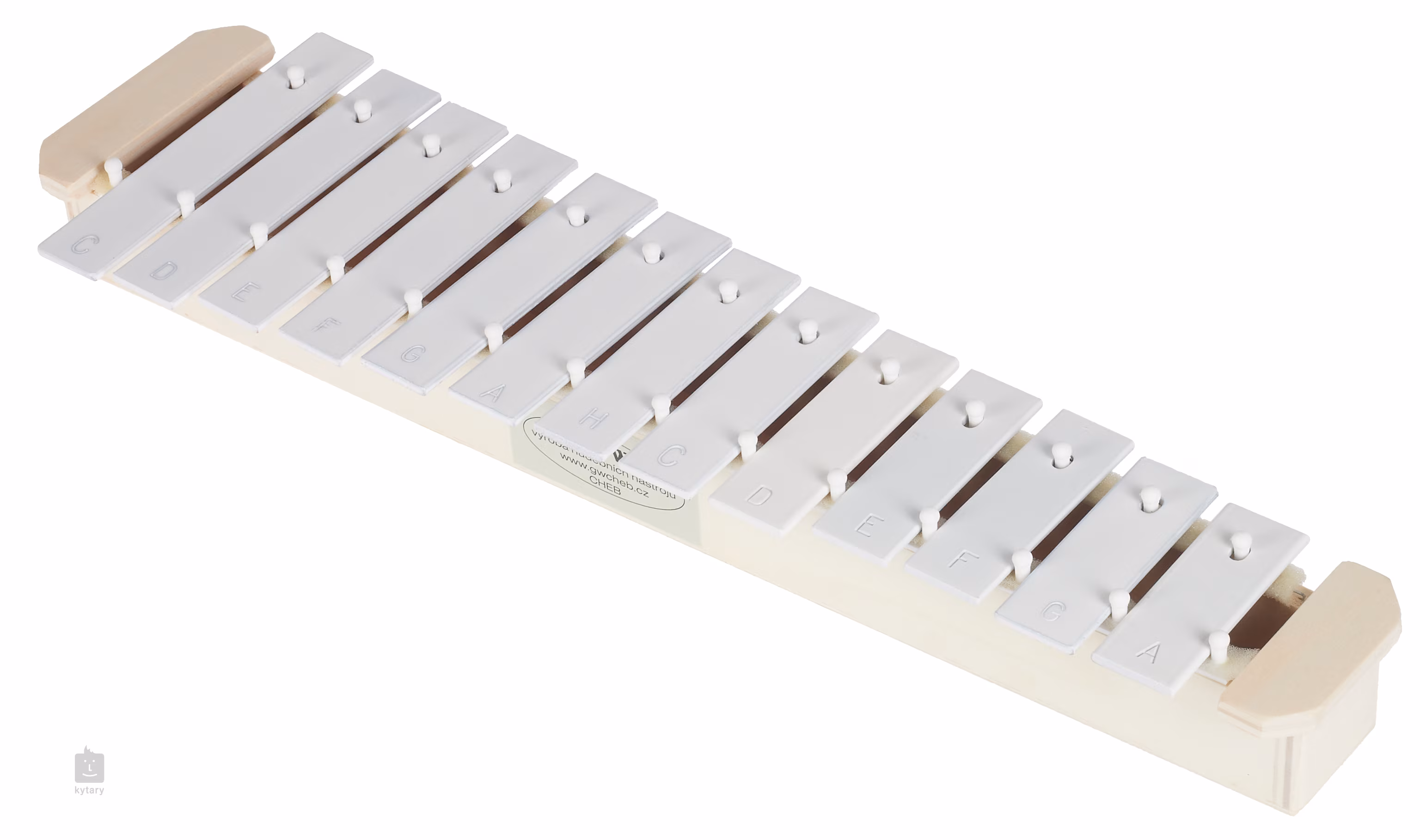 Sopránová zvonkohra pro pokročilé. Otevřené provedení. 13 kamenů šířky 25 mm + 4 vyměnitelné černé kameny. Součástí dodávky jsou 2 paličky.