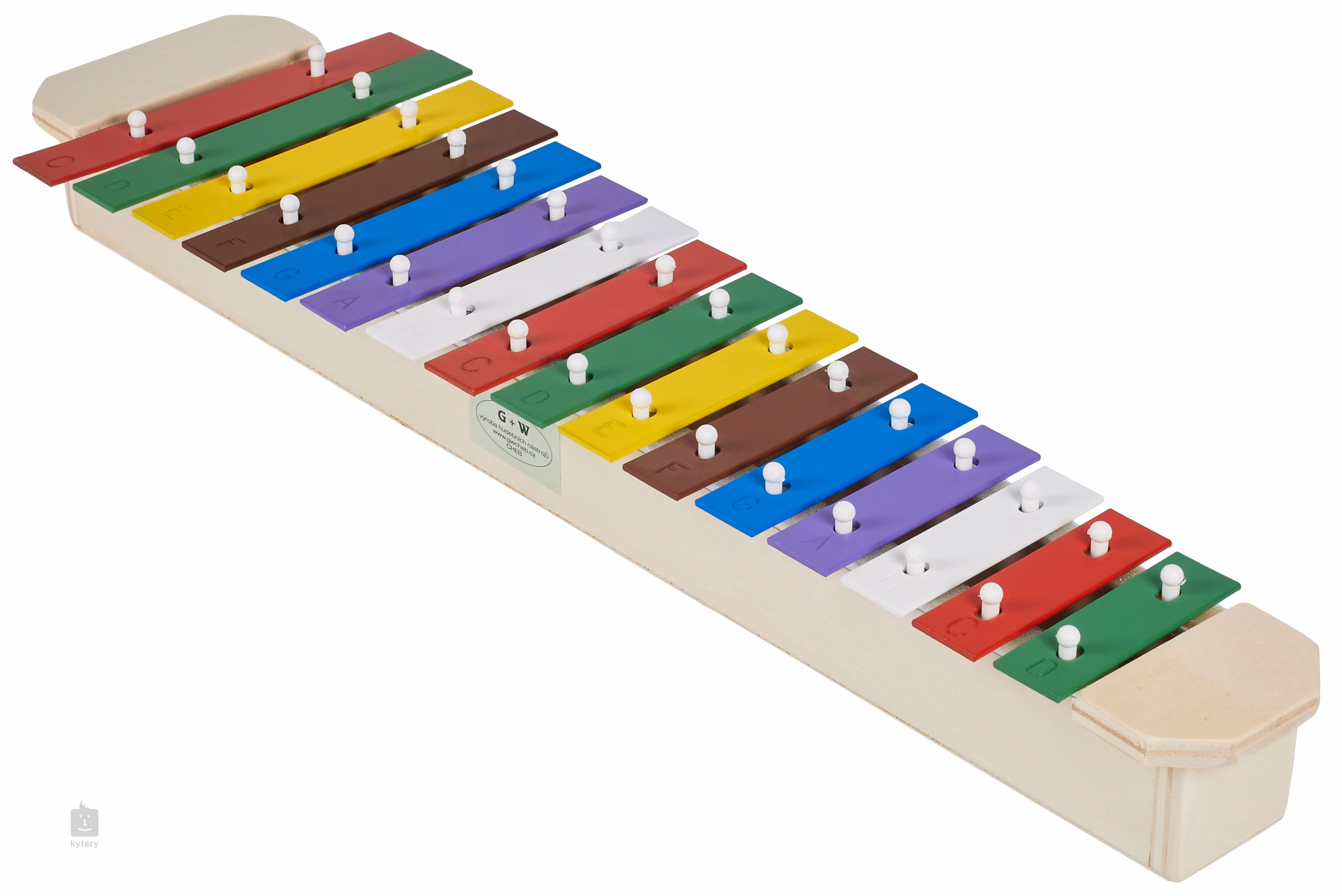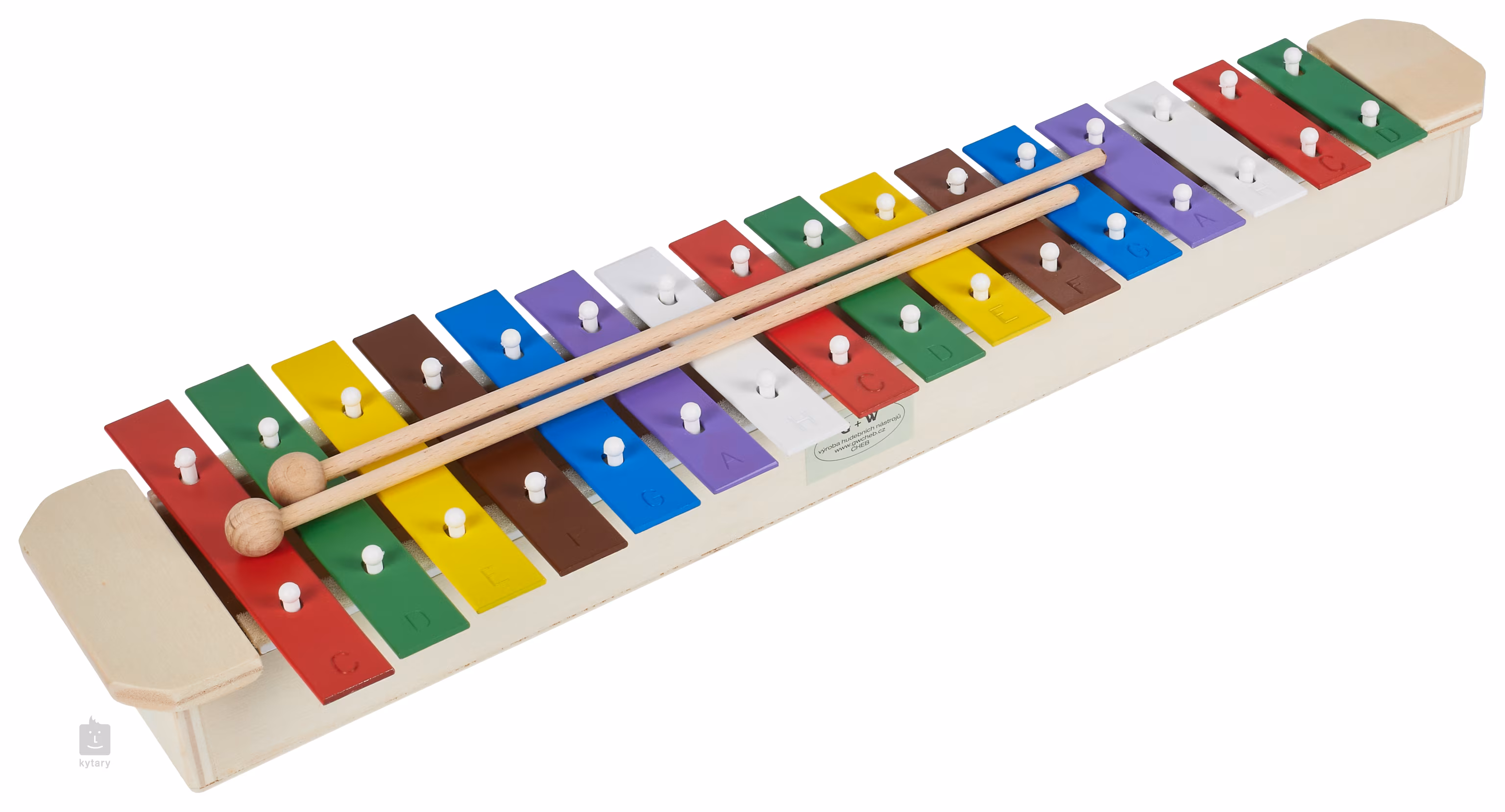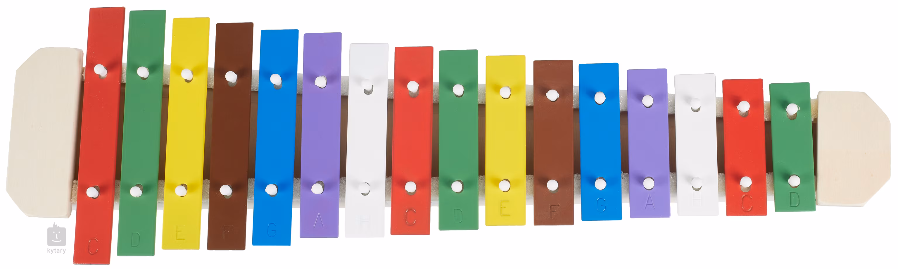 Dětská sopránová zvonkohra. 16 kamenů šířky 20 mm (pořadí barev evropské). Součástí dodávky jsou 2 paličky.
