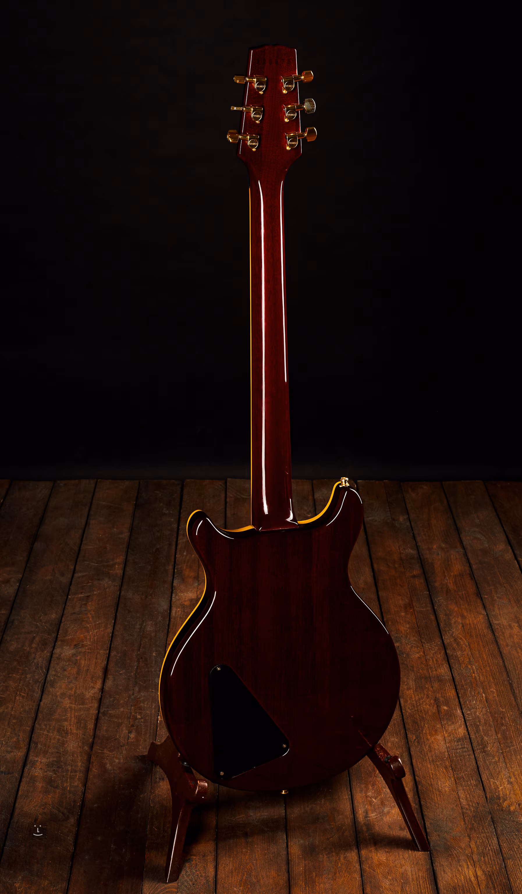 Tento Sunburst má fládrovaný luxusní javorový top. Krk a tělo jsou jinak z mahagonu, palisandrový hmatník a přední strana těla jsou lemované krémovou lemovkou. Novější snímače Seymour Duncan: SH-4 u krku, SH-1 u krku.