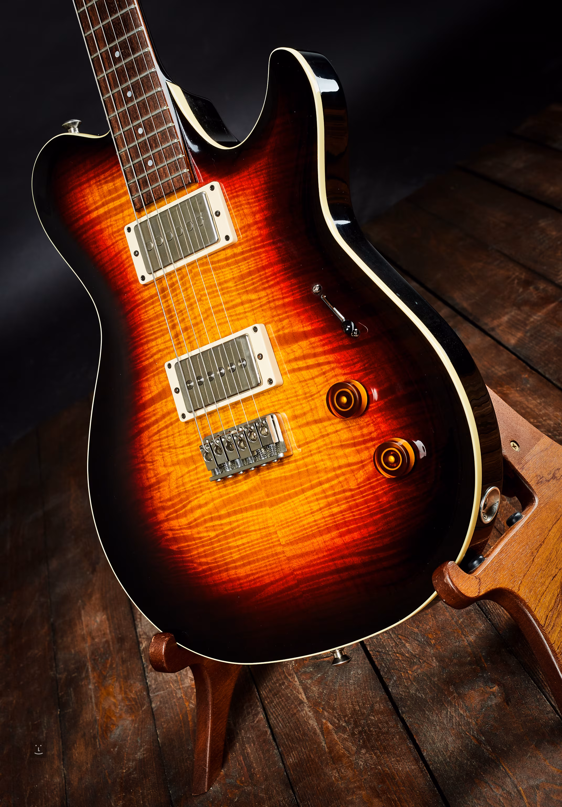 Top z fládrovaný javoru je reliéfovaný (carved), zbytek těla je jasanový z jednoho kusu dřeva. Uvnitř nástroje se nachází tone-block, křídla jsou dutá. Snímače Seymour Duncan byly navržené přímo pro tento model. Palisandrový hmatník má rádius 14"; menzura je 25.5".