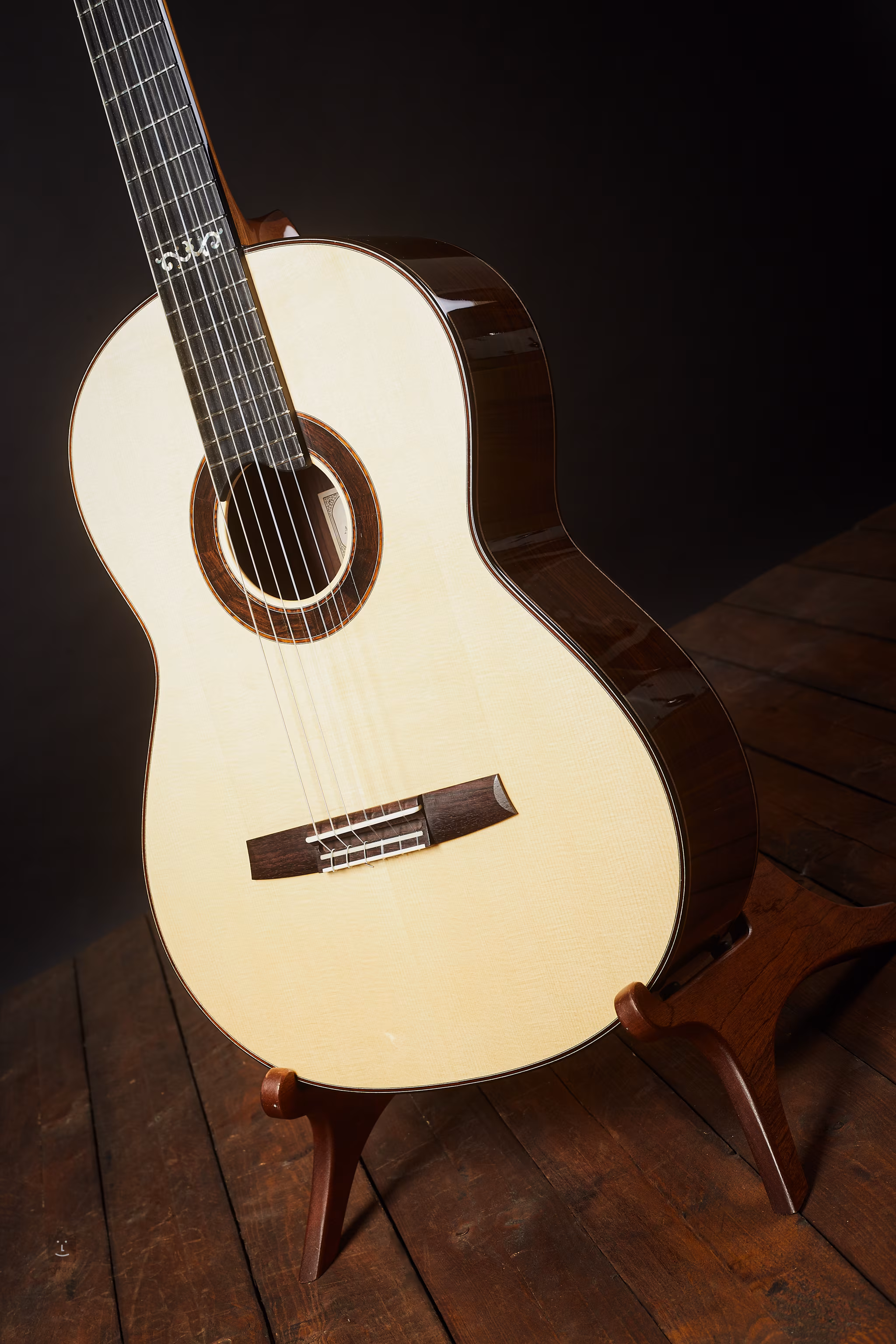 Zadní strana a boky jsou z nejkvalitnějšího palisandru, díky němuž je zvuk pevný a jemný, značně probarvený ve středech. Rezonanční deska je z výběrového smrkového dřeva. Cedrový krk je v jádru několikrát vyztužený palisandrem a mahagonem, a to včetně patky. Asymetricky vyvážená klenutá rezonanční deska je tenčí u okraje a silnější ve středu, to optimalizuje její akustickou účinnost.