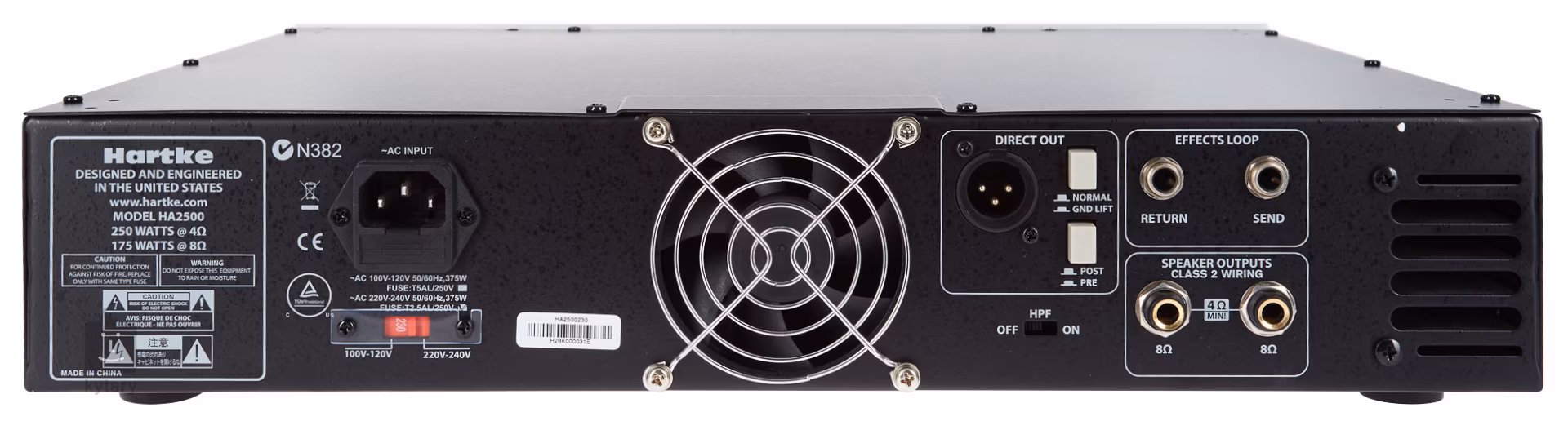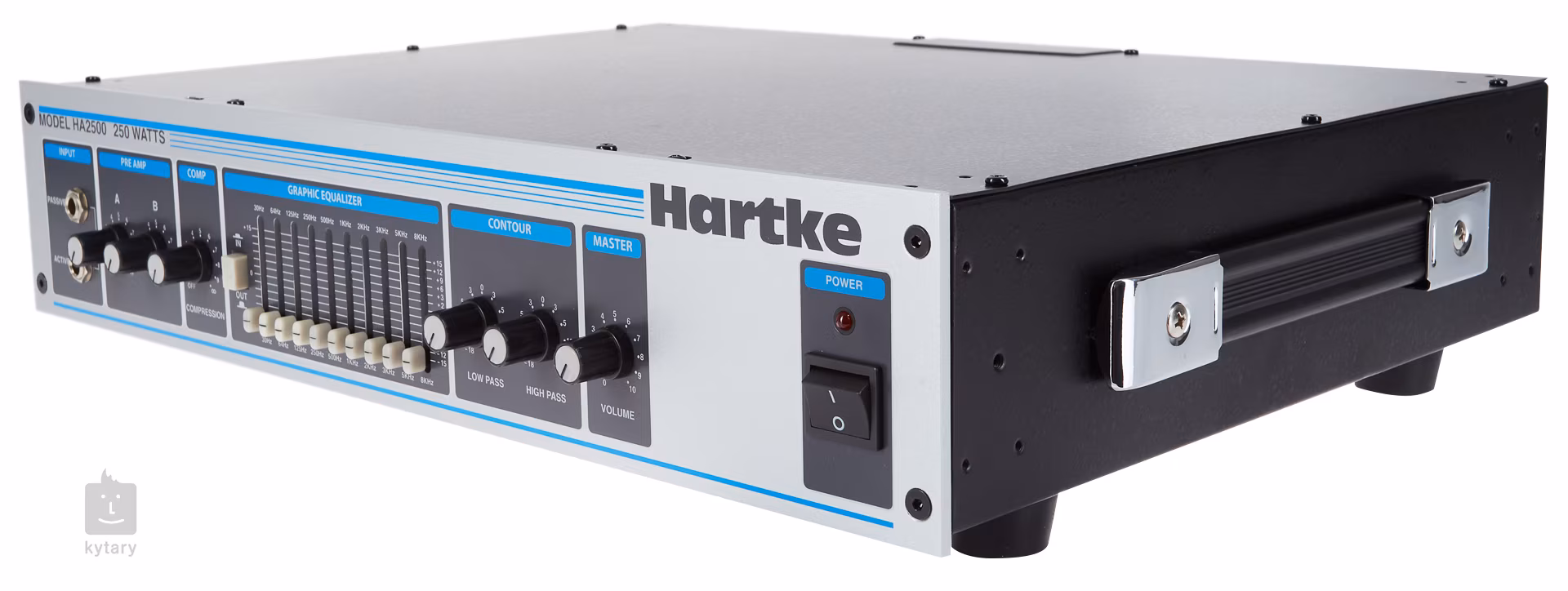 Hartke HA2500 je zesilovač, který je svými dispozicemi ideální na vystoupení na menších nebo středně velkých akcích či samozřejmě na hraní ve zkušebně. Dodá výkon až 250W do zátěže 4 Ohm, do 8 Ohmů dokáže vytvořit až 180W. Je konstruován tak, že před tranzistorovým koncovým zesilovačem naleznete dva preampy, jeden čistě tranzistorový a jeden s obvodem simulující zvuk lampových zesilovačů.