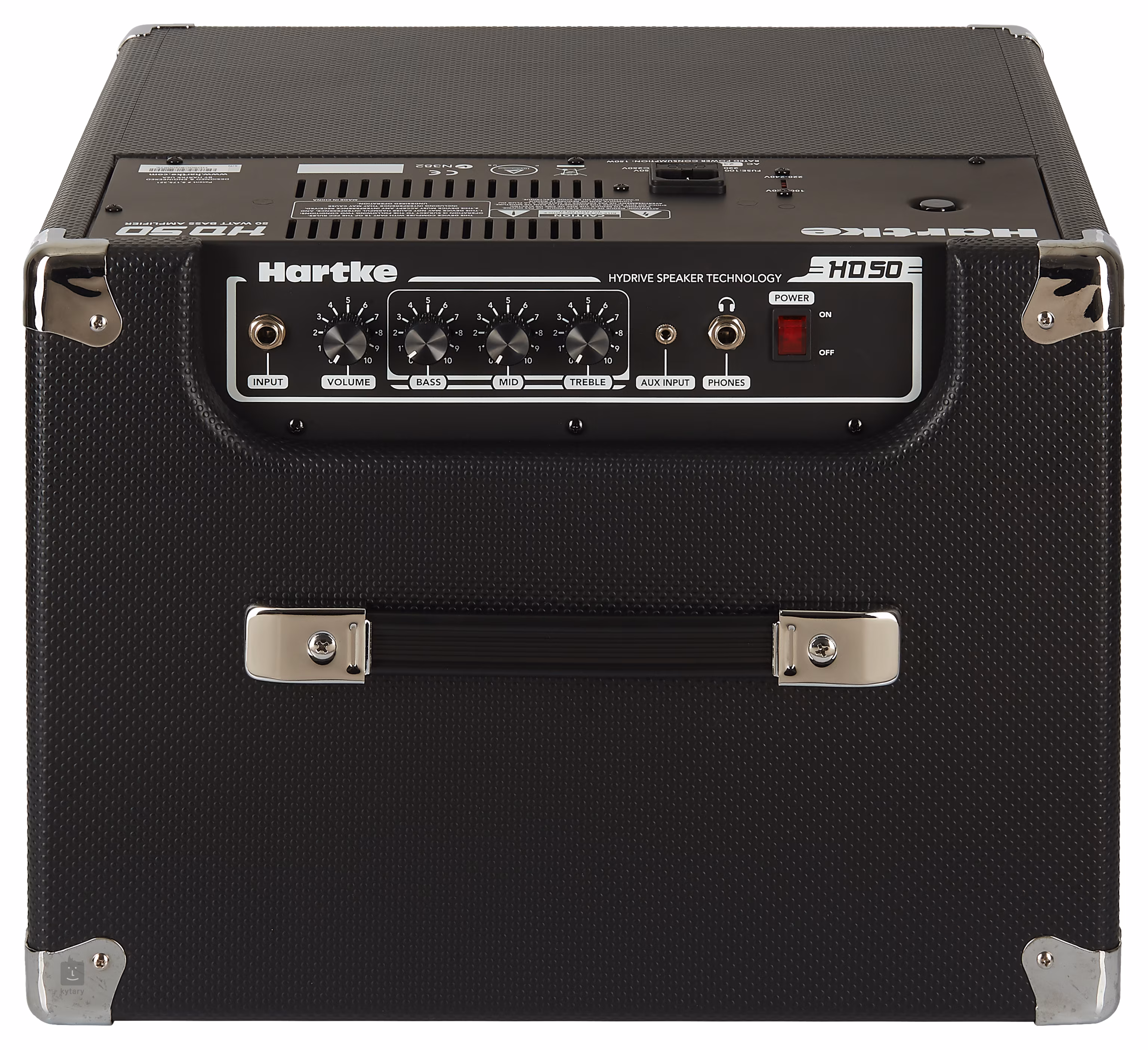 Ovládání aparátu je umístěno na horní straně. Za vstupem pro vaši baskytaru naleznete ovladač hlasitosti a 3pásmový ekvalizér nastavující basy, středy a výšky. HD je samozřejmě vybaveno sluchátkovým výstupem pro tiché hraní a Aux-In vstupem pro externí zařízení typu CD nebo mp3 přehrávačů.