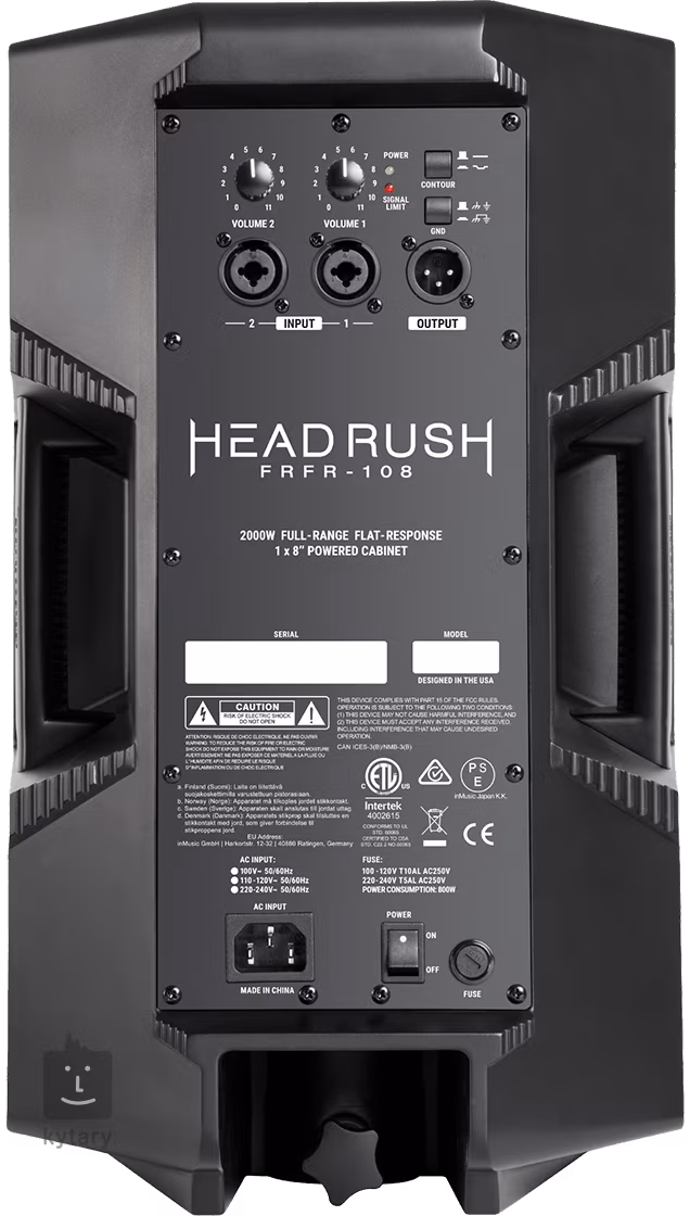 HeadRush FRFR-108 je aktivní širokopásmový FRFR (Full Range Flat Response) reproduktor pro kytaru nebo baskytaru s impozantním výkonem 2000 wattů, který mu poskytuje osmipalcový woofer a výškový driver. Reproduktor na zadním panelu nabízí dva kombinované XLR/TRS vstupy se samostatnými ovladači hlasitosti, přepínatelné uzemnění (Ground-lift switch), přepínač Contour (EQ) a XLR výstup. Navzdory vysokému výkonu reproduktor neváží ani 10 kg, reproduktory chrání perforovaná ocelová mřížka. Speaker lze použít jako monitor nebo připevnit ke standardním stojanům na reproboxy.