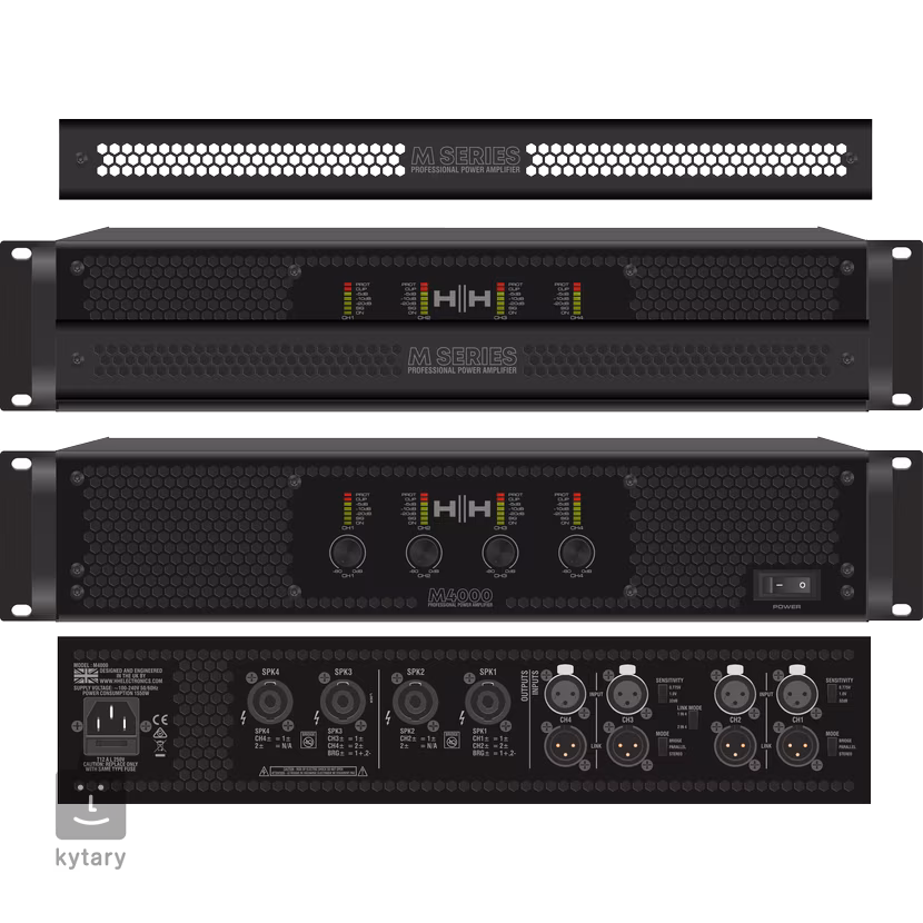 Přední strana disponuje ovladači hlasitosti a přehlednými LED indikátory pro každý kanál. Na zadním panelu naleznete čtyři XLR vstupy a výstupy s třípolohovým přepínačem citlivosti a módů Bridge/Parallel/Stereo. Pro přímé připojení do reproduktorů potom využijete čtyři Speakon konektory.