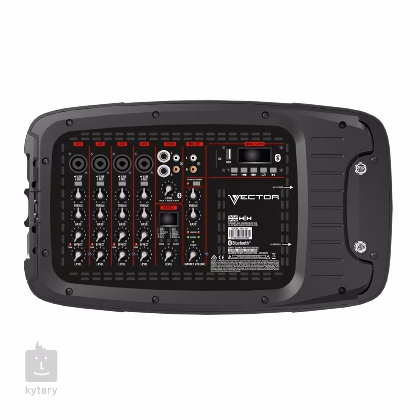 Oba reproboxy v sobě ukrývají 10“ basový a 1“ výškový reproduktor, které spolu se zesilovačem třídy D vytváří maximální výkon až 2x 500W. Šestikanálový mixpult obsahuje čtyři kombinované XLR/Jack konektory s přepínačem Mic/Line, dva Jack 6,3 mm TS vstupy a pár stereo RCA vstupů. Mikrofonní vstupy obsahují fantomové napájení pro kondenzátorové mikrofony nebo DI boxy, o eliminaci zpětné vazby se potom postará integrovaný limiter s LED indikací. Maximální přehled o vašem nastavení vám poskytne displej s intuitivním ovládacím panelem.