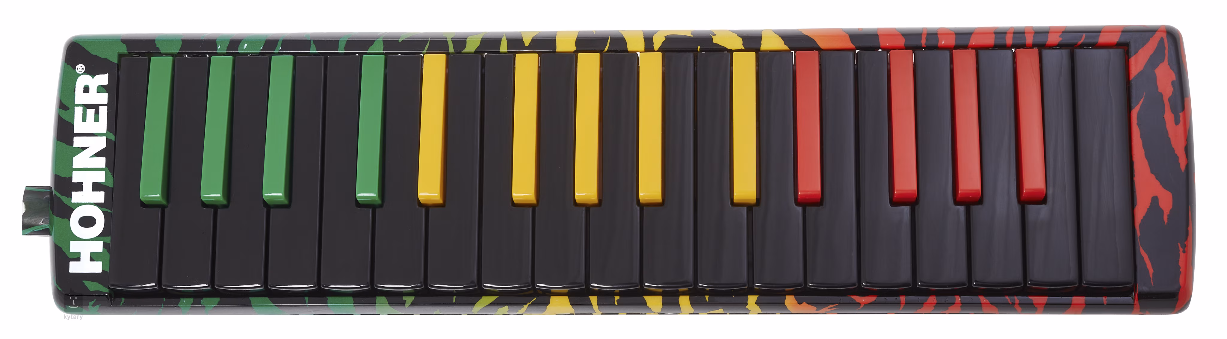 Stylová verze klávesových harmonik Hohner Airboard v barvách Rasta.