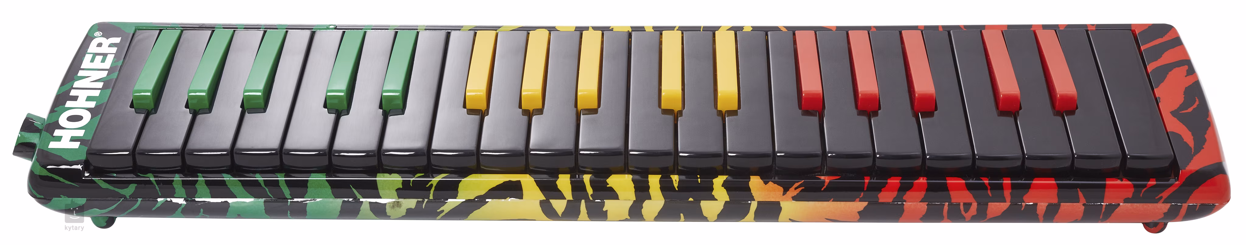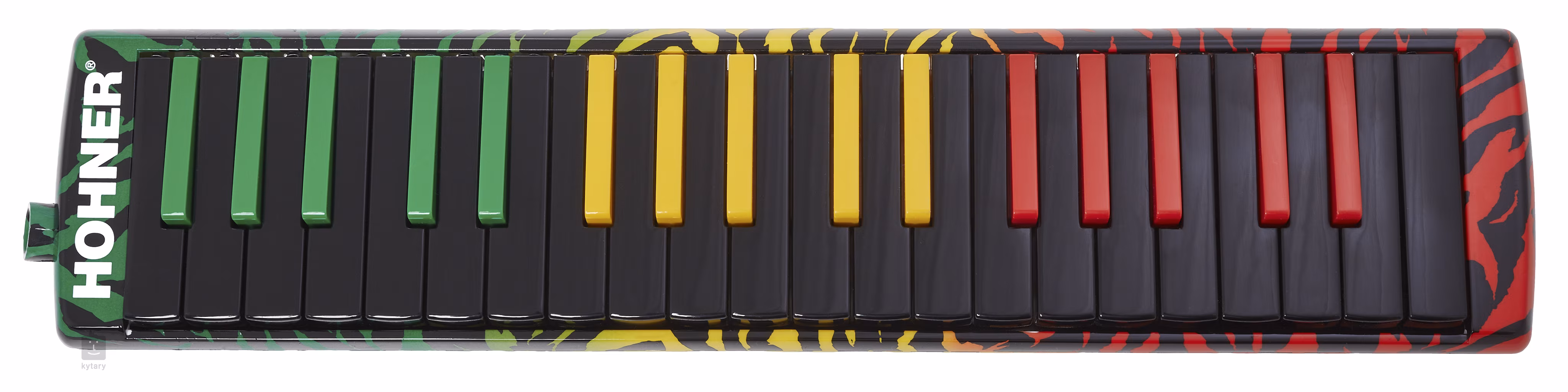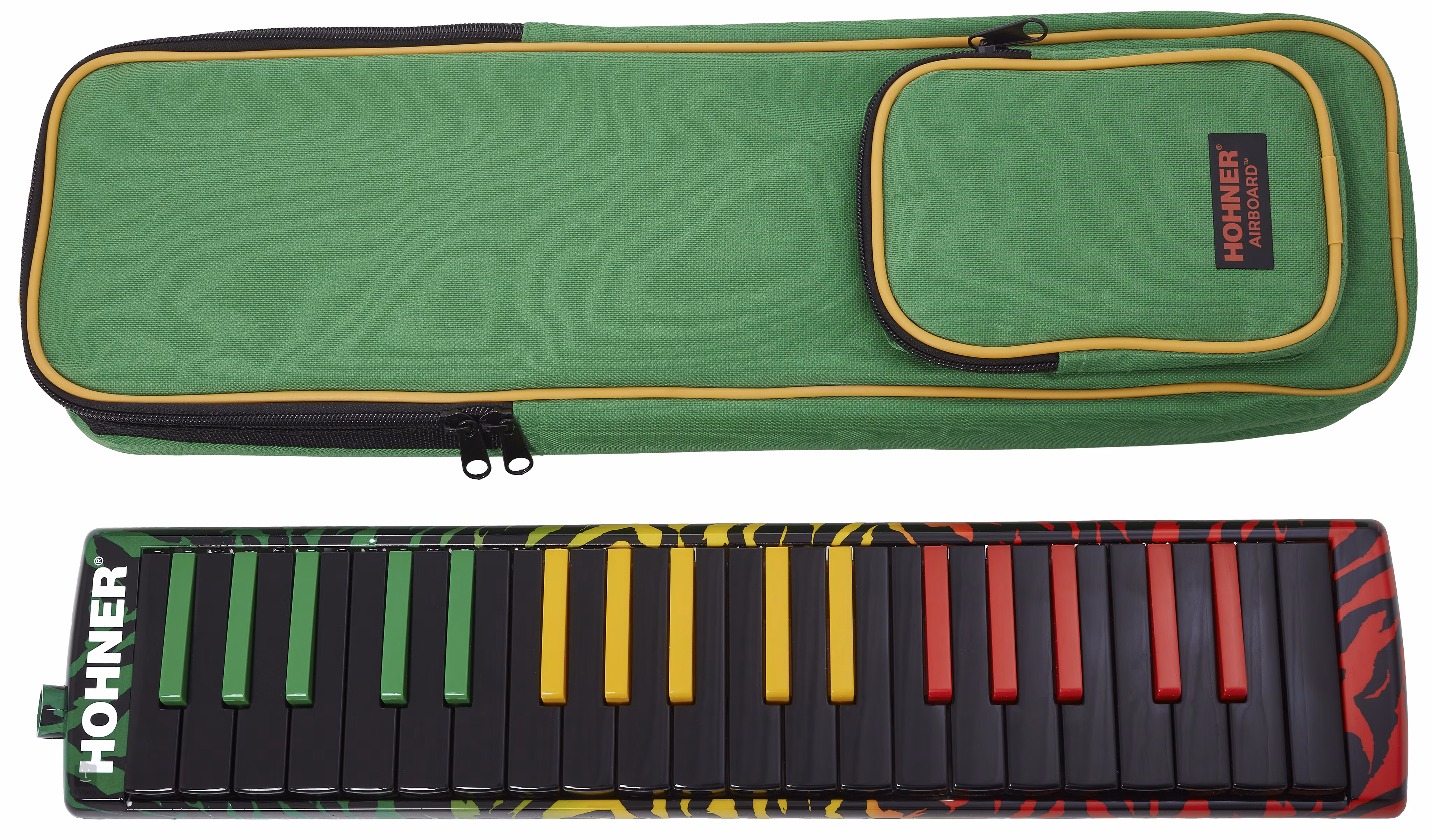 Stylová verze klávesových harmonik Hohner Airboard v barvách Rasta.