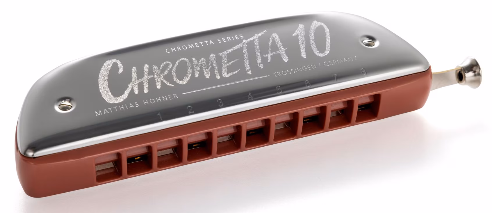 Model Chrometta 10 je druhou nejmenší harmonikou této řady. Nabízí korpus a náustek zhotovené z odolného kompozitního materiálu ABS, mosazné hláskové desky o tloušťce 1,05 mm, čtyřicet mosazných hlásků a krycí plechy z nerezové oceli. Harmonika je laděná v C a poskytuje rozsah tónů G3 až Db6.