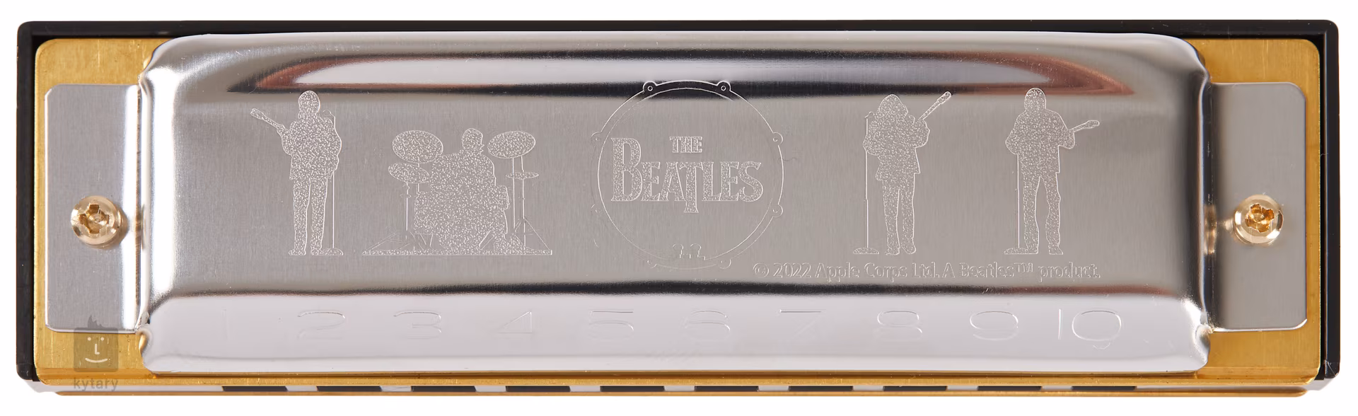 Design nástroje je doplněn o kryty z nerezové oceli zdobené logem The Beatles a stylizovanými siluetami jednotlivých členů kapely, což z harmoniky dělá nejen plnohodnotný hudební nástroj, ale i atraktivní sběratelský kousek. Součástí balení je také praktické plastové pouzdro, které harmoniku bezpečně ochrání při přenášení.