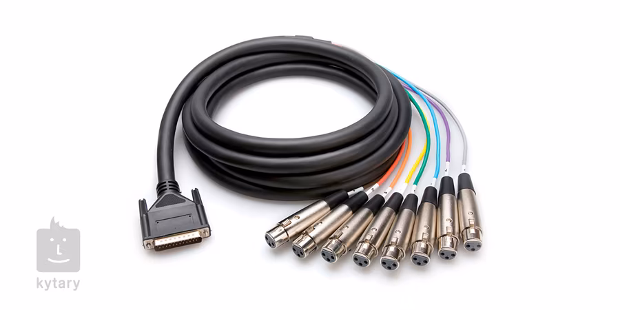 Hosa DTF-803 je párový propojovací kabel o délce 3 m s osmi jednotlivými konektory XLR na jedné straně a sdruženým konektorem DB25 na straně druhé.