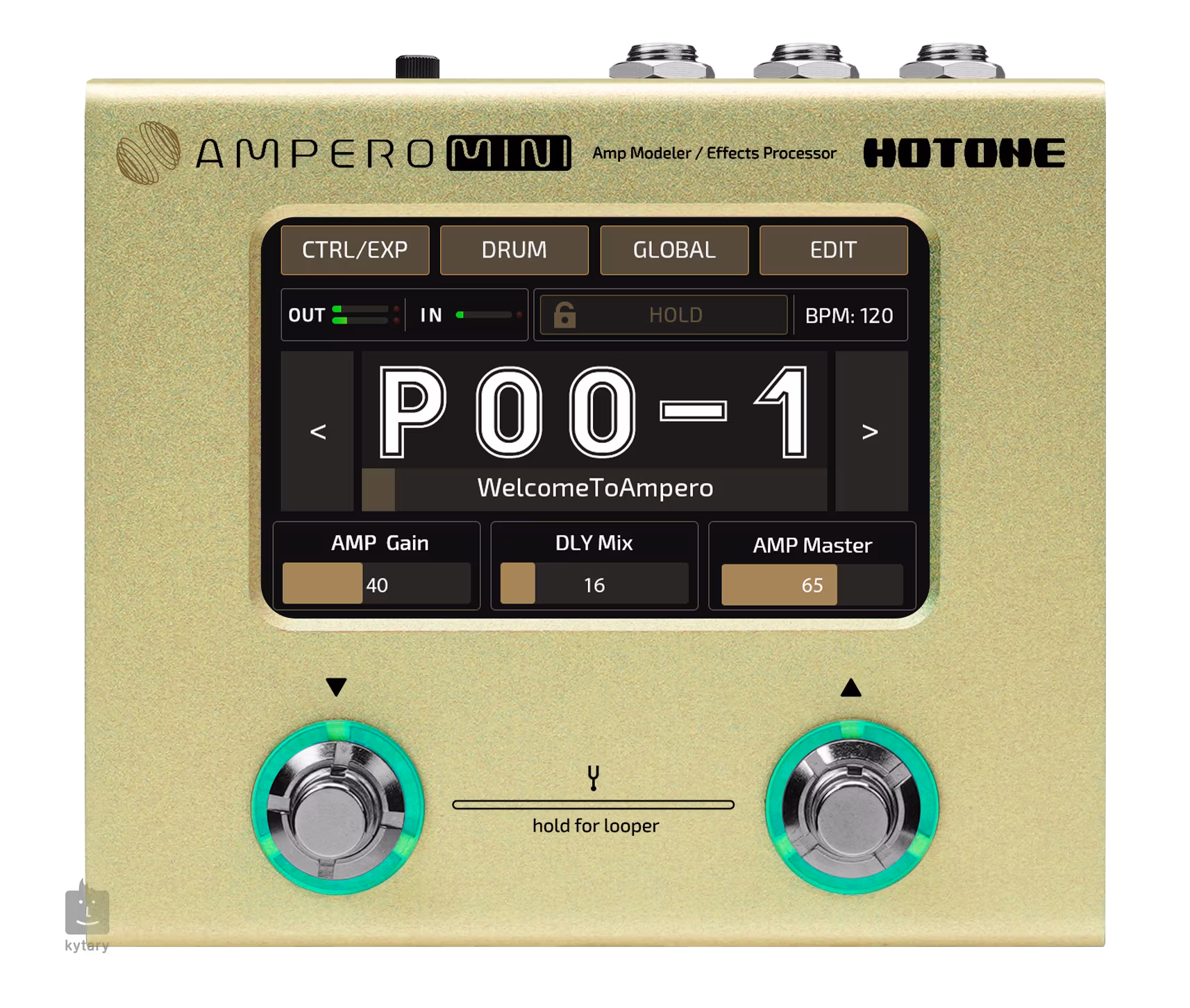 Ampero Mini je nejmenším z rodiny kytarových multiefektů/amp modelerů Hotone Ampero, to ho ovšem nijak neomezuje nebo diskvalifikuje v porovnání s ostatními produkty této řady. Nabízí celkem 199 kytarových efektů, z toho více než 100 modelingů kytarových aparátů, reproboxů a pedálových efektů známých značek, mikrofonní simulace, původní efekty Hotone, tovární IR i možnost nahrávání vlastních IR, pokročilé algoritmy pro simulaci akustických kytar a firemní presety akustických nástrojů, celkem 198 presetů (99 továrních, 99 uživatelských), zabudovaný bicí automat se stovkou rytmických patternů, looper s kapacitou 100 sekund nahrávacího času a USB port, který použijete jako USB audio rozhraní, nebo pro firmware update či nahrávaní/editaci efektů ve volně přístupném software pro Mac/PC