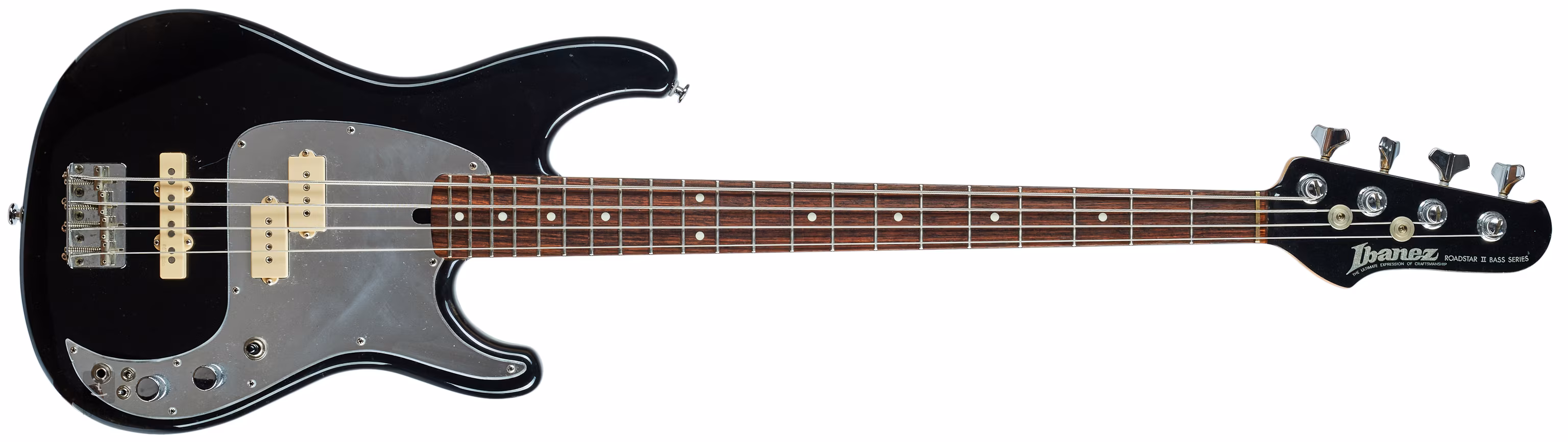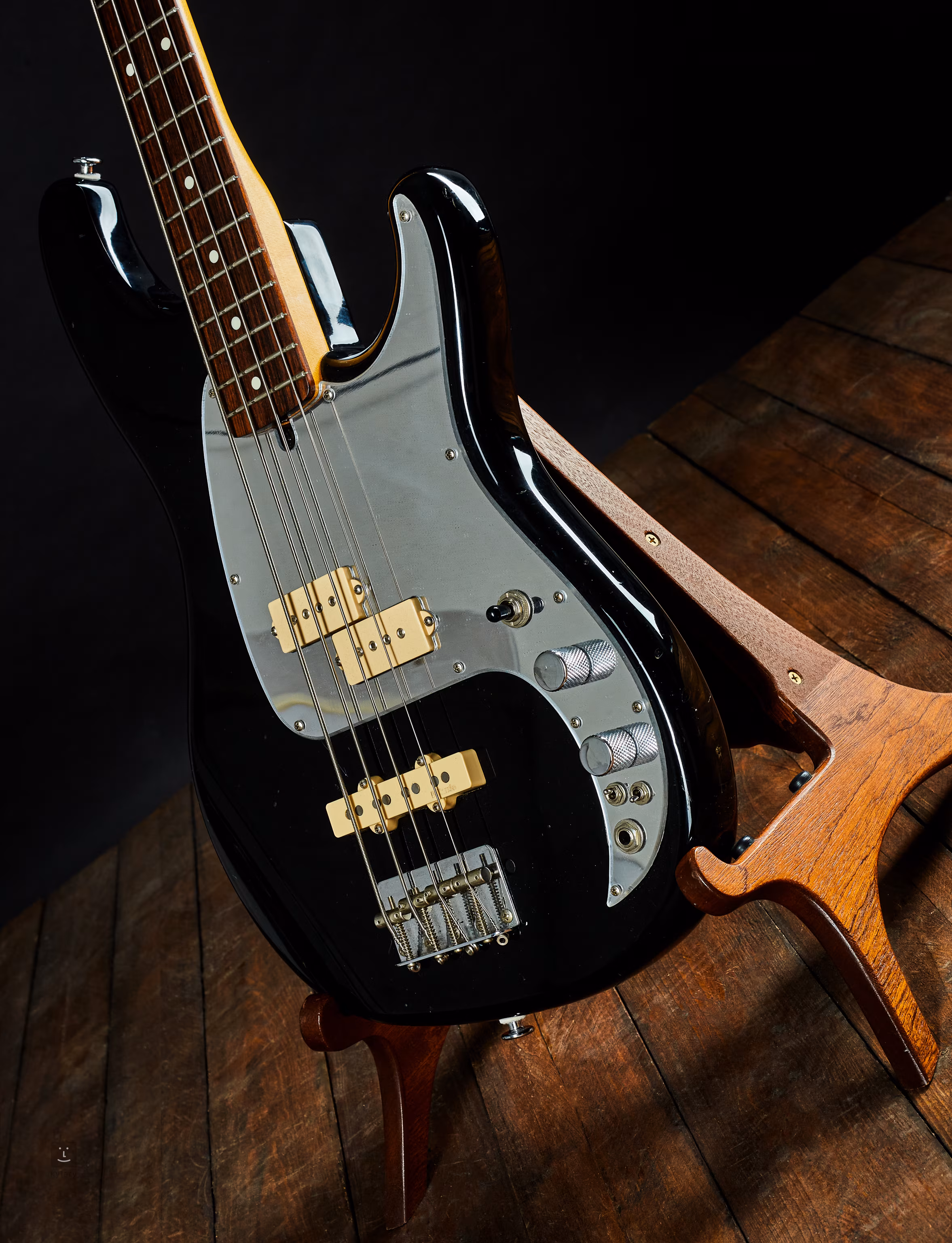 Japonská baskytara z roku 1986. Nástroj po upgradu: snímače minihumbucker DiMarzio u kobylky a Schaller (r. 1991) u krku, zrcadlový pickguard. Elektronika je pasivní umožňuje snímače zapojit paralelně i sériově.