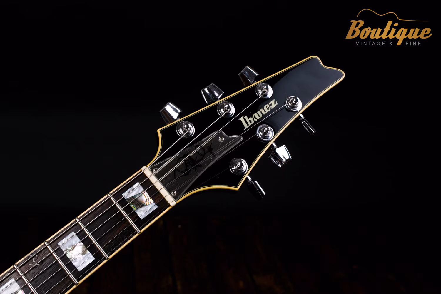 Kytara se může pochlubit mahagonovým tělem s javorovým topem, krkem ze tří kusů javoru, efektní perleťovou lemovkou obepínající tělo i hmatník nástroje a dekorativním struníkem. Původní humbuckery Ibanez AH1/AH2 byly vyměněny za humbuckery Seymour Duncan ´59 s odpovídajícím PAF charakterem, ladící mechaniky též nejsou původní. V nástroji zůstal otvor po alternativním uchycení šroubu na popruh, ten je nyní na původním místě. Spolu s kytarou je prodáván kufr Gator s polstrováním, které přesně odpovídá rozměrům kytary. Kufr i kytara jsou samozřejmě v bezvadném stavu.