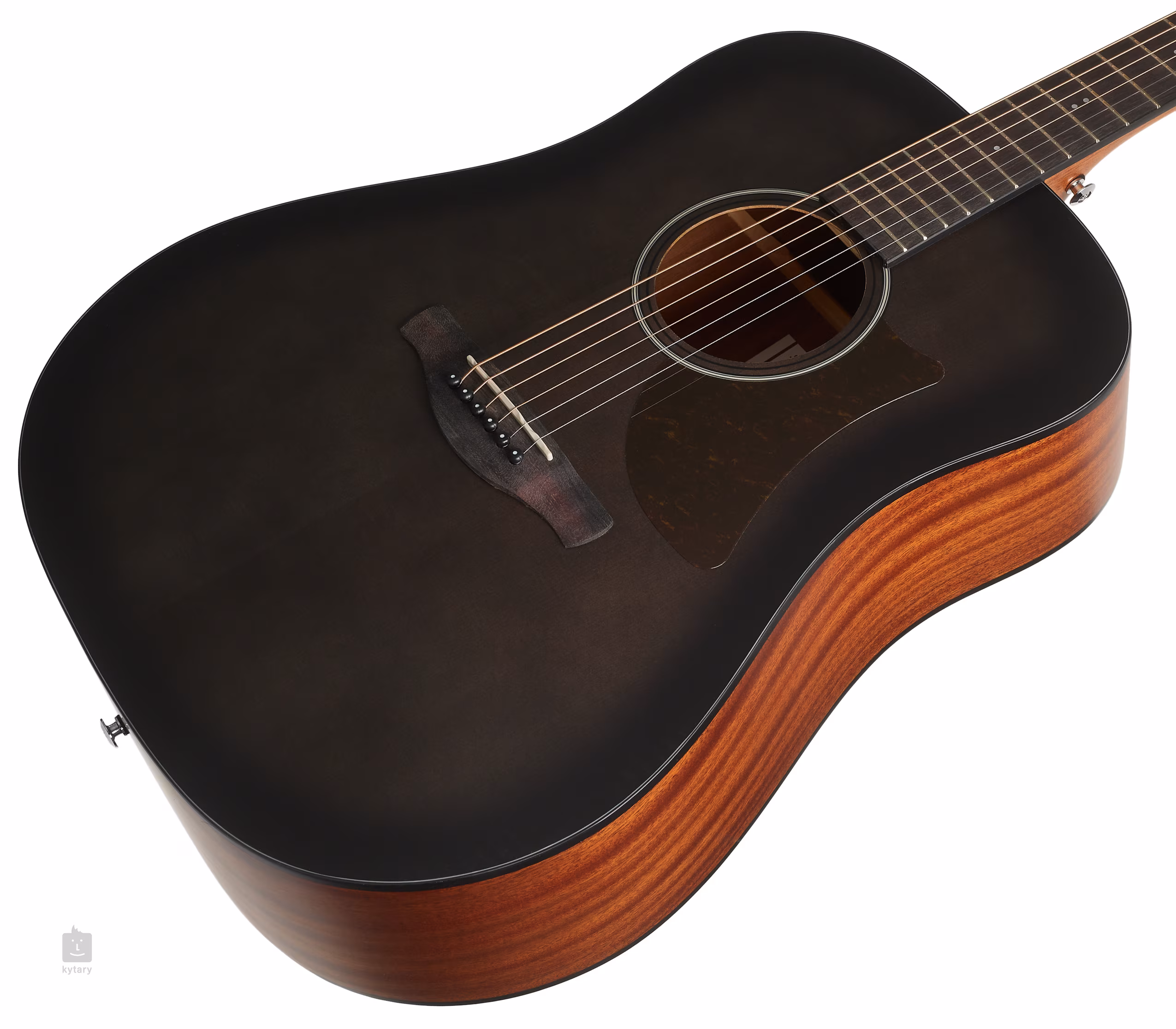 Struny jsou přes plastový nultý pražec a sedlo ukotveny v chromovaných Die-Cast mechanikách s převodovým poměrem 18:1 a kobylce z purpleheart. Kolíčky do kobylky Ibanez Advantage nabízí oproti standardním modelům výhody v podobě snadné manipulace a pevného uchycení strun. Stylový vzhled nástroje podtrhuje úprava topu Transparent Charcoal Burst Low Gloss a tradiční prvky v podobě rozety složené z černobílých prstenců a pickguardu.