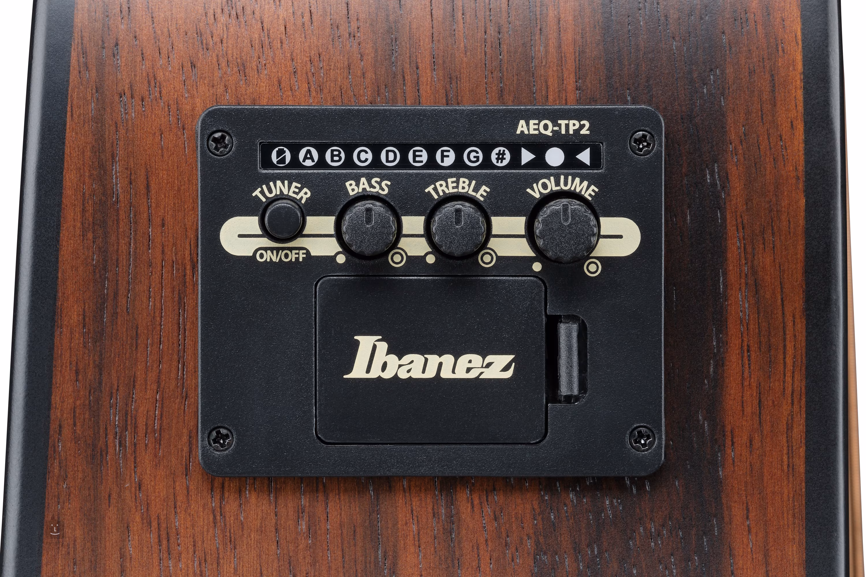 O ozvučení nástroje se stará podkobylkový snímač Ibanez T-bar a preamp AEQ-TP2 s dvoupásmovým ekvalizérem a zabudovanou ladičkou. Signál z kytary pošlete ven běžným nástrojovým kabelem (Jack 6,3 mm) nebo symetrickým XLR výstupem.