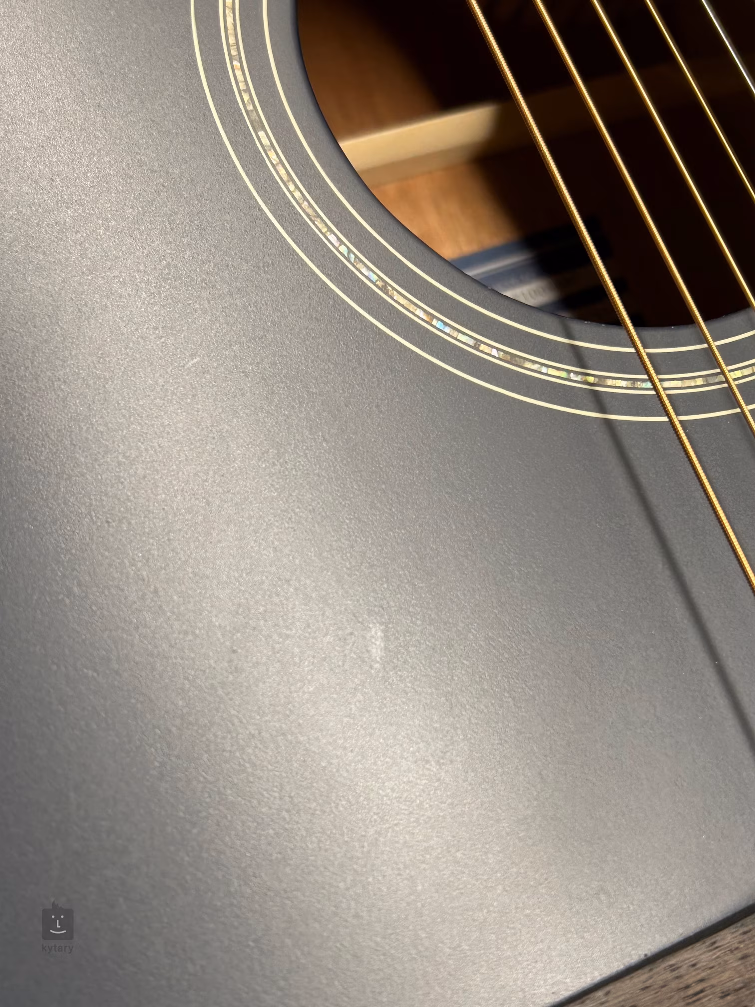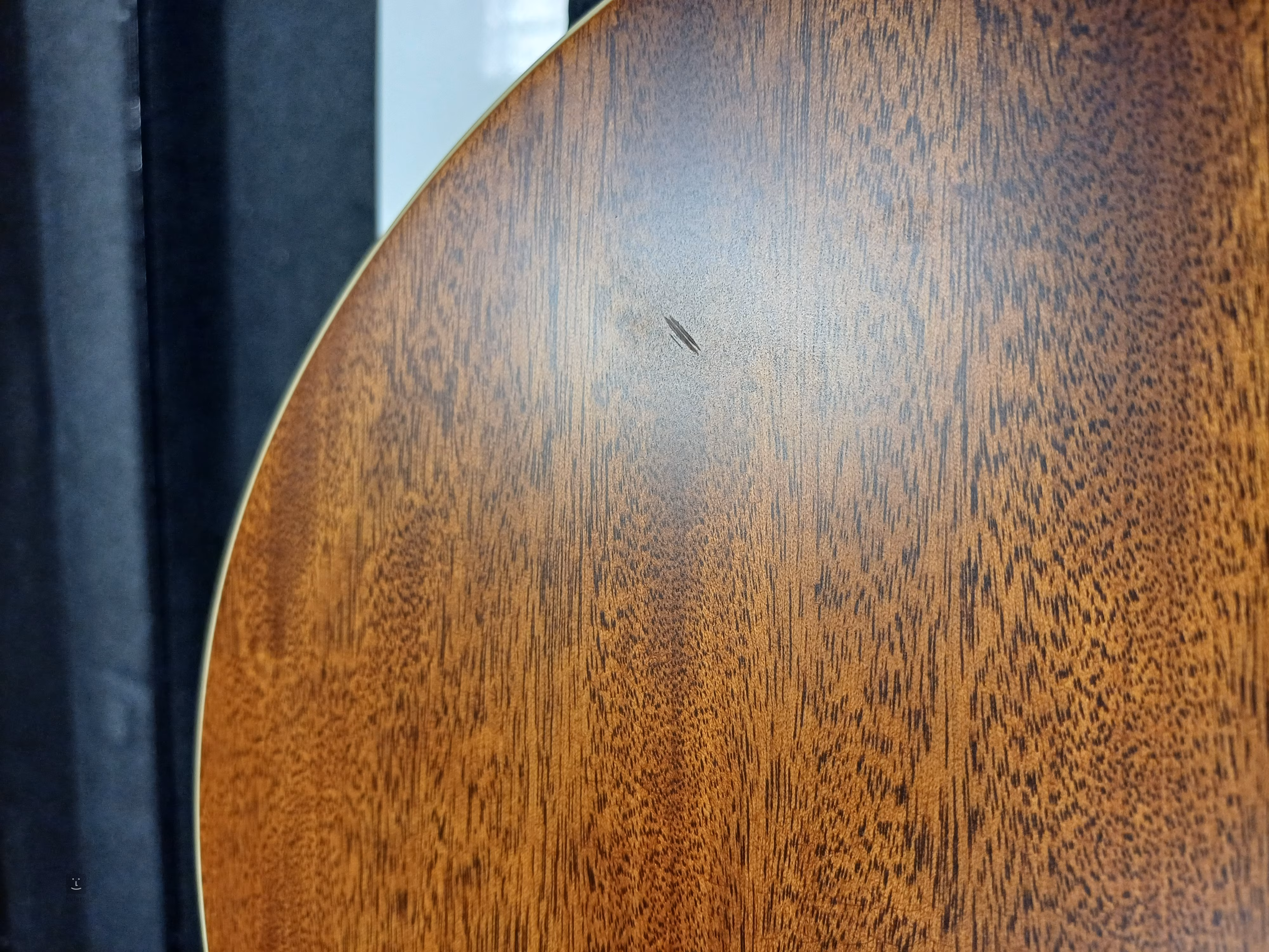 Na zadní desce je menší vryp ve dřevě (viz. foto). Jinak je kytara v pořádku a plně funkční.