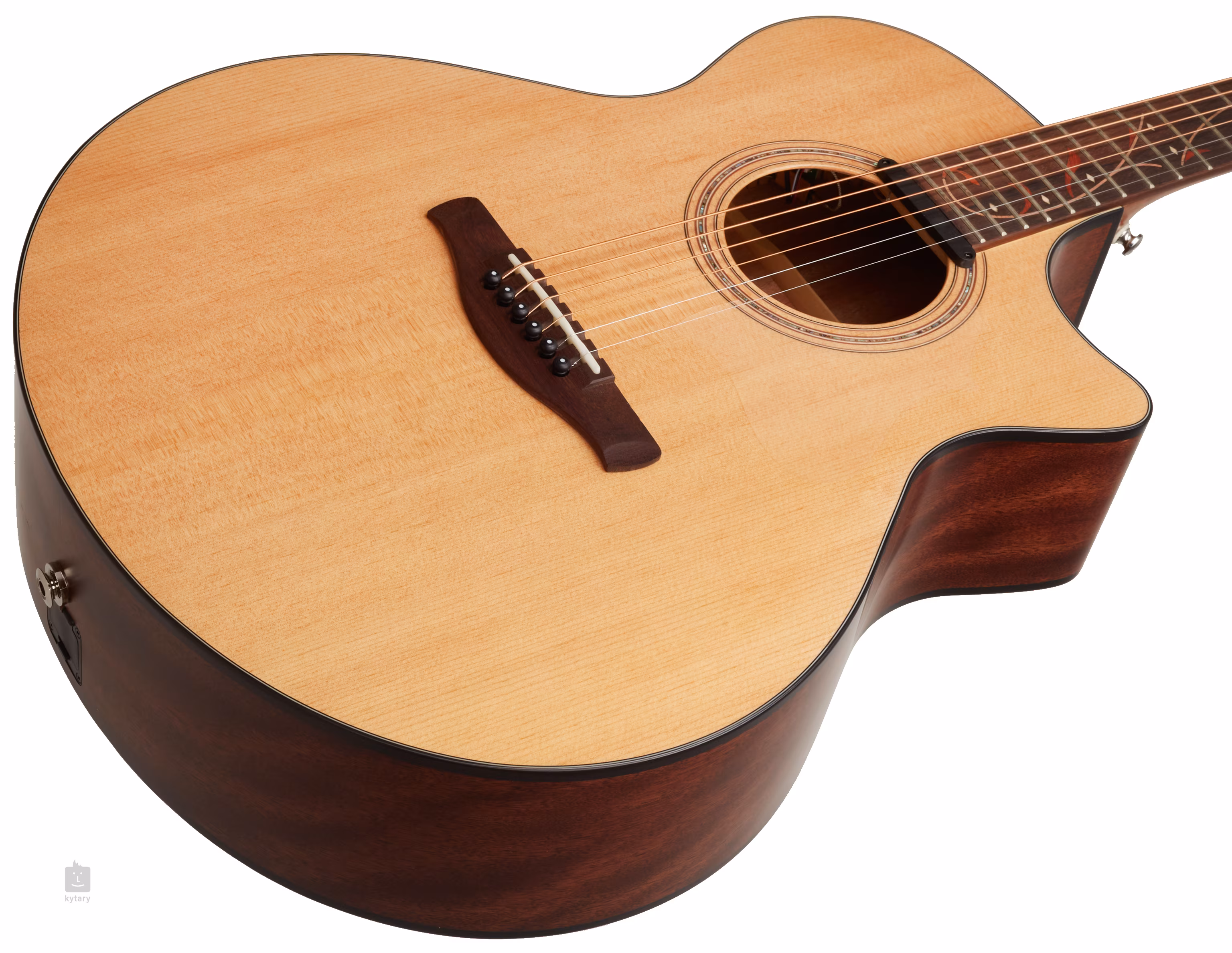 Přední deska modelu AE275-LGS je zhotovena z masivního smrku Sitka, zadní deska a luby z překližovaného okoumé. Pečlivě navržené snížené žebrování X-M a umístění žeber zaručuje efektivní přenos vibrací strun přes kobylku do těla. Ke krku z exotického dřeva nyatoh je přilepen hmatník z pau ferro osazený dvaceti pražci velikosti Jumbo. Úzký „C“ profil krku a zaoblené hrany hmatníku poskytují hráčům větší herní komfort, plochu hmatníku zdobí dřevěný inlay s motivy vinných listů.