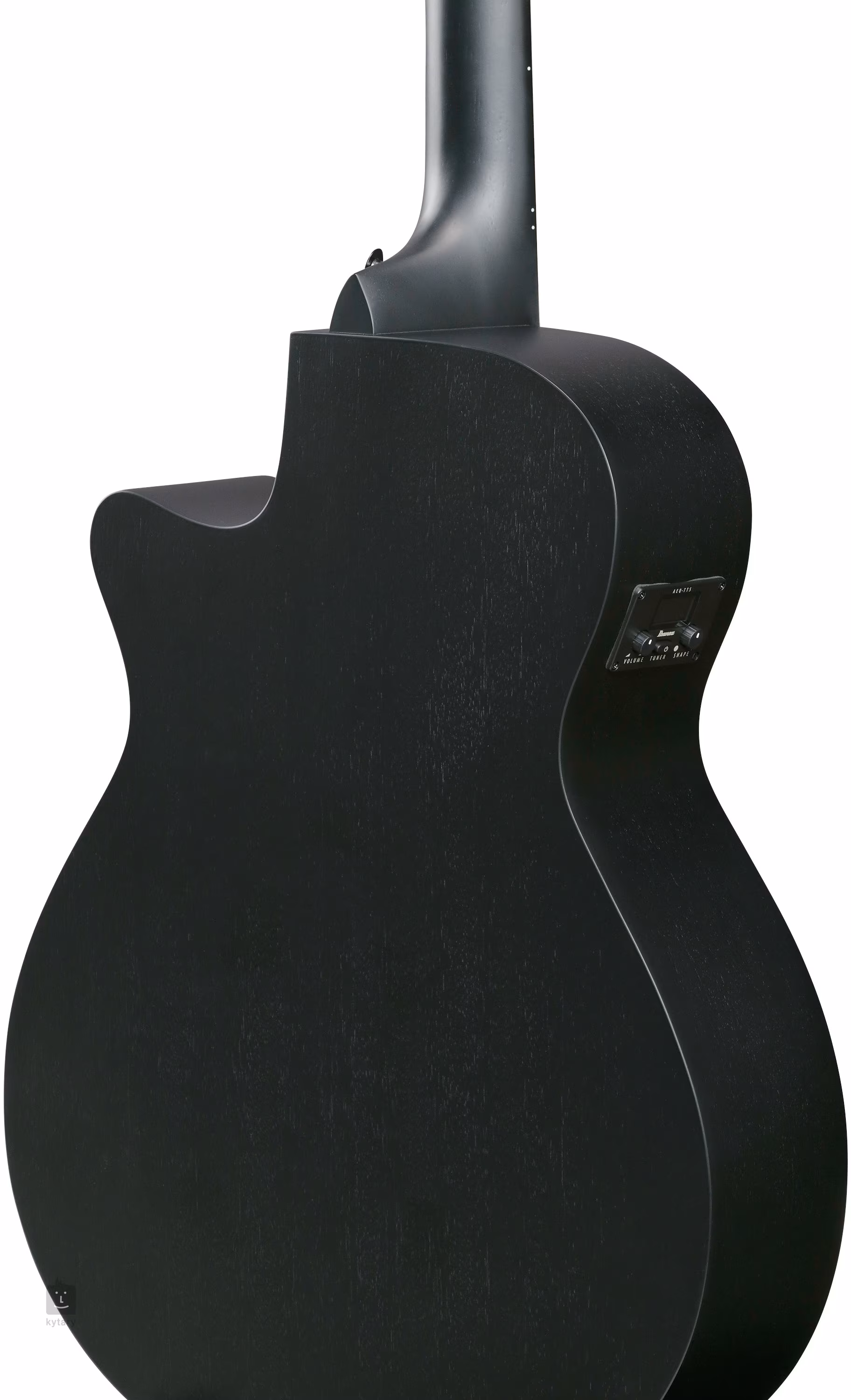 Přední deska elektroakustické kytary AEG621-BOT je zhotovena z vrstveného smrku, zadní deska a luby jsou vyrobeny z vrstveného sapele. Tělo kryje černý lak. Ke krku ze dřeva nyatoh je přilepen hmatník z ebenu makassar osazený dvaceti pražci. Comfort Grip profil krku a spodní výřez těla jsou zárukou dobrého dohmatu a herního pohodlí na celé ploše hmatníku.