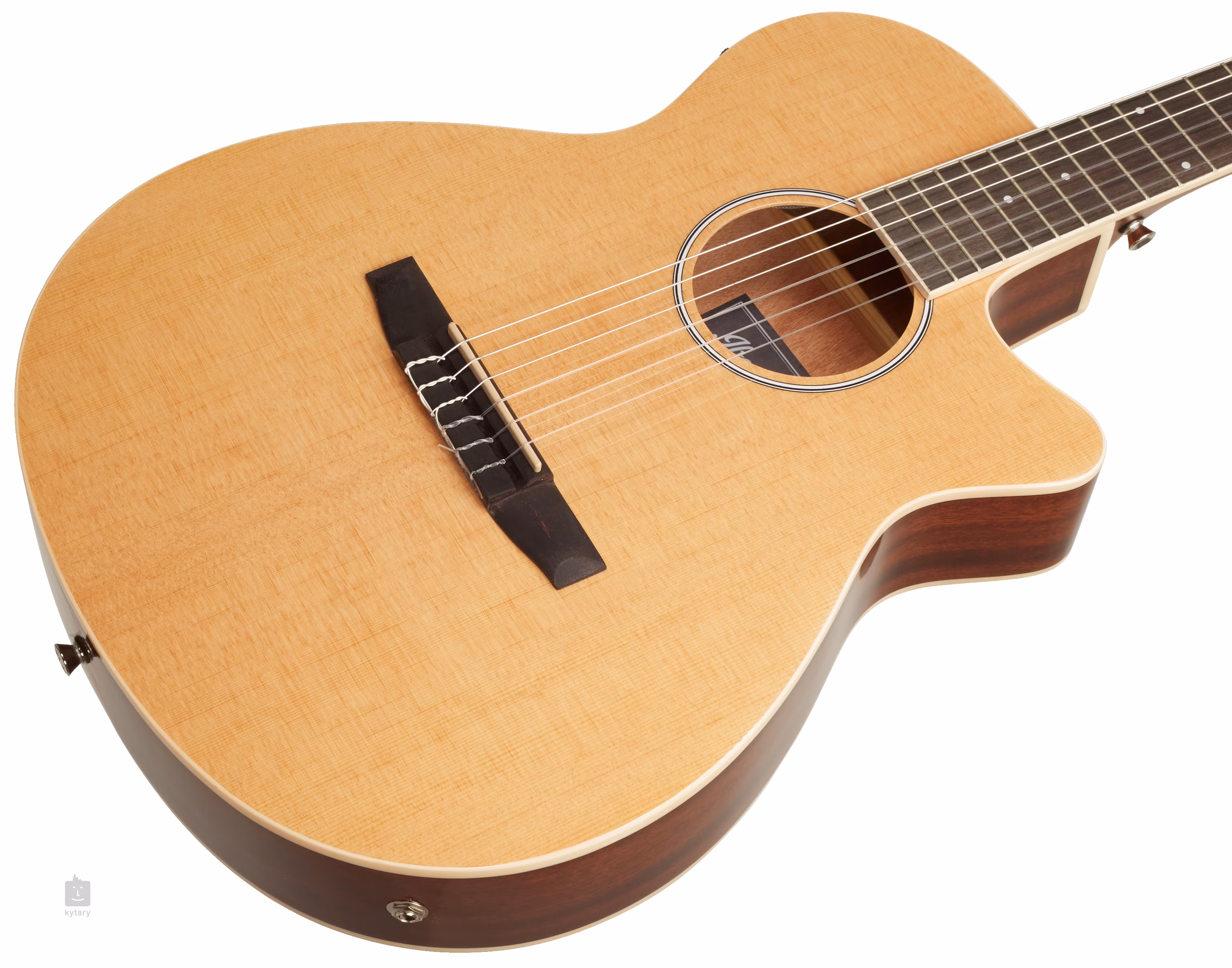AEG7TN-NT je klasická elektroakustická kytara, která spojuje moderní konstrukci těla elektroakustických kytar AEG se zvukem nylonových strun. Vrstvený korpus kytary je zhotoven z přední smrkové desky a zadní desky a lubů z afrického sapele, dřeva vizuálně i vlastnostmi podobného pravému mahagonu. Ke krku z okoumé je přilepen hmatník ze dřeva purpleheart/amaranth osazený dvaceti pražci. Spodní výřez těla nabízí dobrý dohmat i na nejvyšších polohách hmatníku, orientaci po jeho ploše usnadňují bílé poziční tečky.