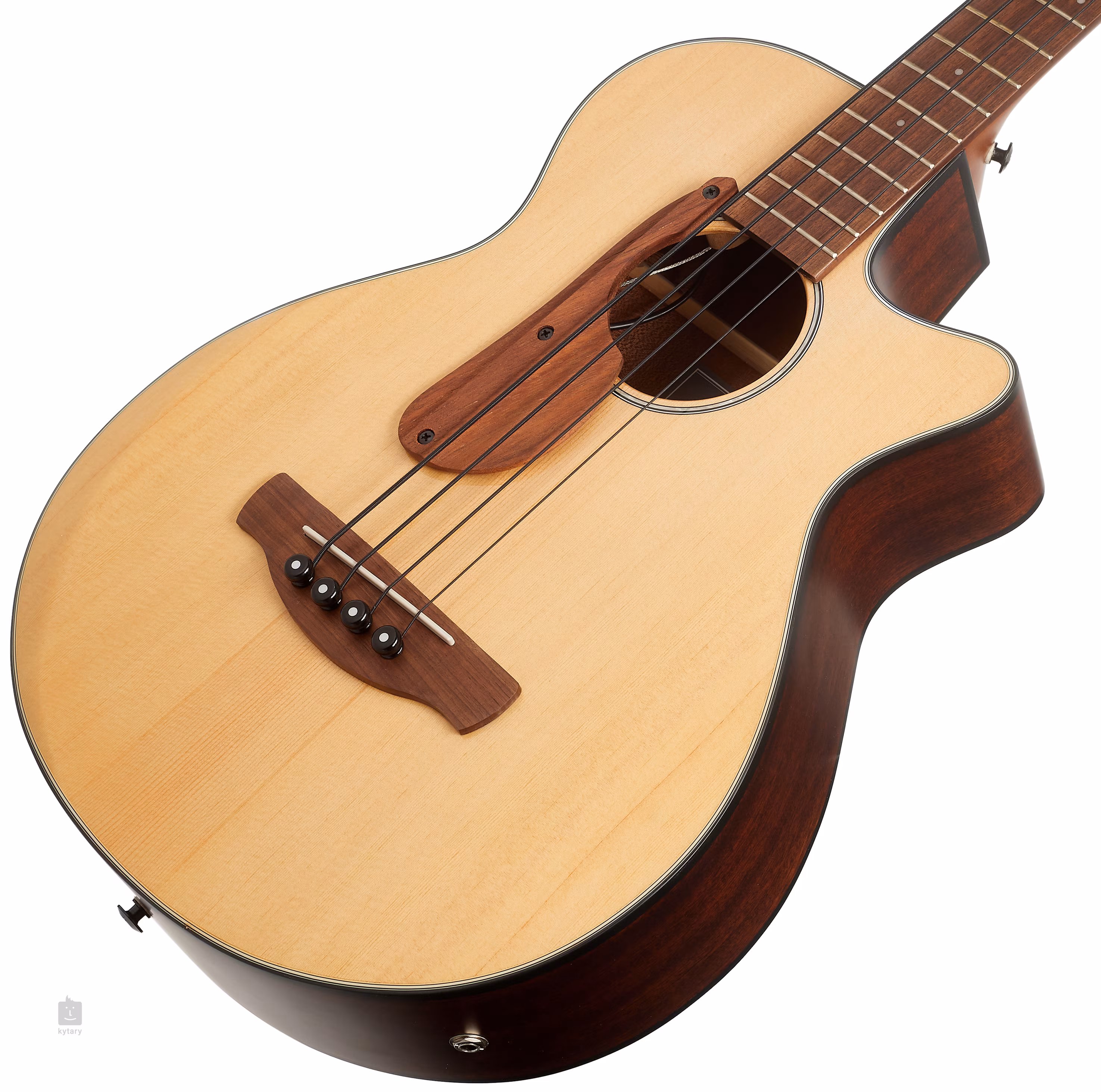 Ibanez AEGB30E Natural je elektroakustická baskytara s užším 95 mm hlubokým tělem v moderním single-cut designu, které přímo vybízí k hraní naživo – jak akusticky, tak i po zapojení do aparatury. Přední deska nástroje je zhotovena z vrstveného smrku, zadní deska a luby jsou vyrobeny z vrstveného sapele, tj. dřeva vzhledem a vlastnostmi podobného mahagonu. Oceníte i decentní opěrku předloktí (forearm contour). Ke krku ze tří kusů javoru a dřeva nyatoh je přilepen palisandrový hmatník osazený jednadvaceti pražci.